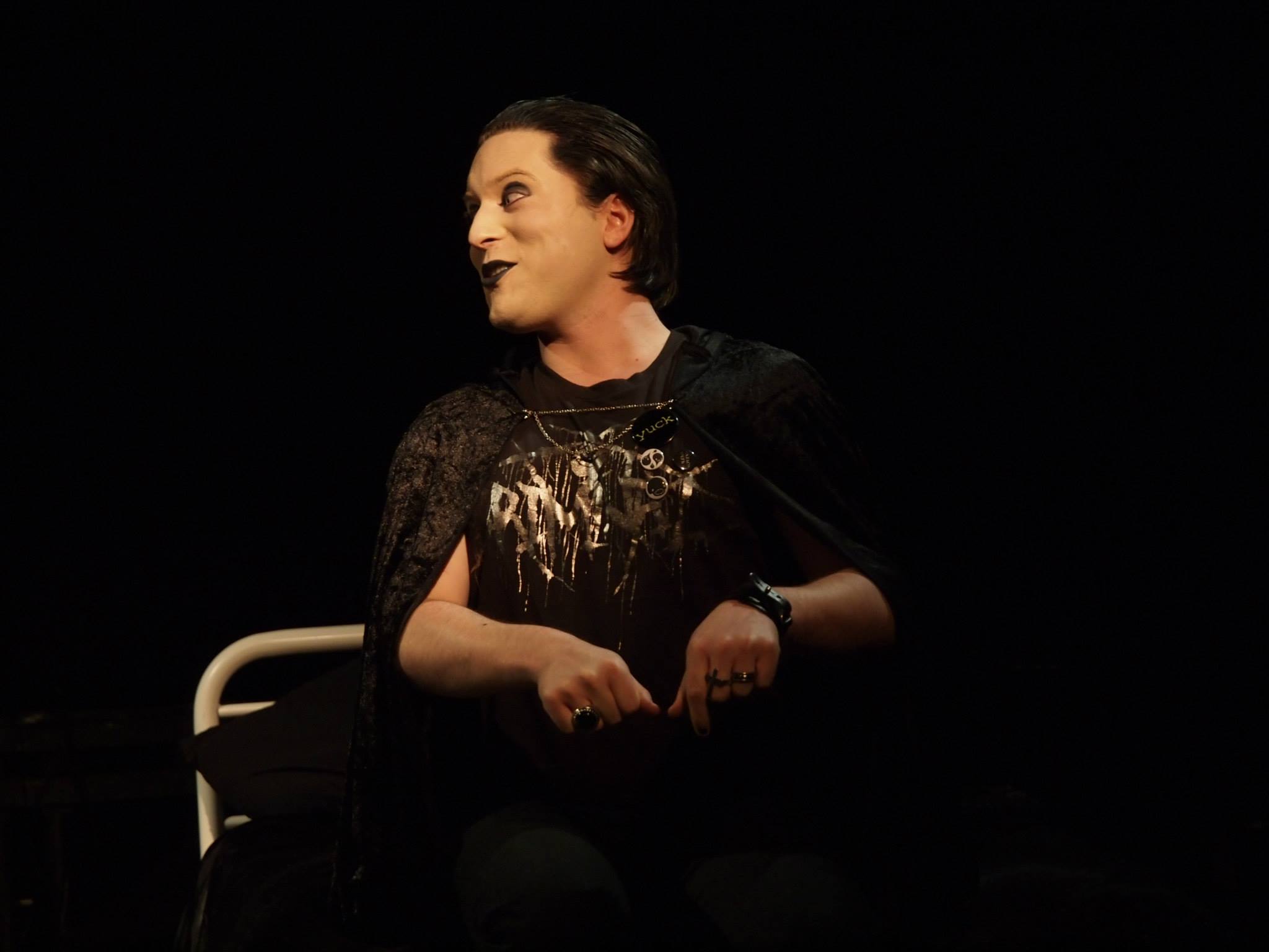 It’s a funny thing with one man plays where most of the time you get the actor right and the rest falls into place, and so it falls into place right in front of us. Rob plays the character as abrasive and sympathetic all at the same time. The angst, or rather the angst the character thinks he should feel, is acted with kindness and presented as the issues that we all struggled with growing up, that we can all relate to. The play couples emotive depth with plenty of laugh out loud moments, highlighting just how ludicrous being a teenager can be – one scene sees our gothic lead going to Starbucks and ordering a mint Frappucino for it is ‘the darkest of all the drinks offered’, then he can be seen sloping off happily to sip it on a gravestone.
