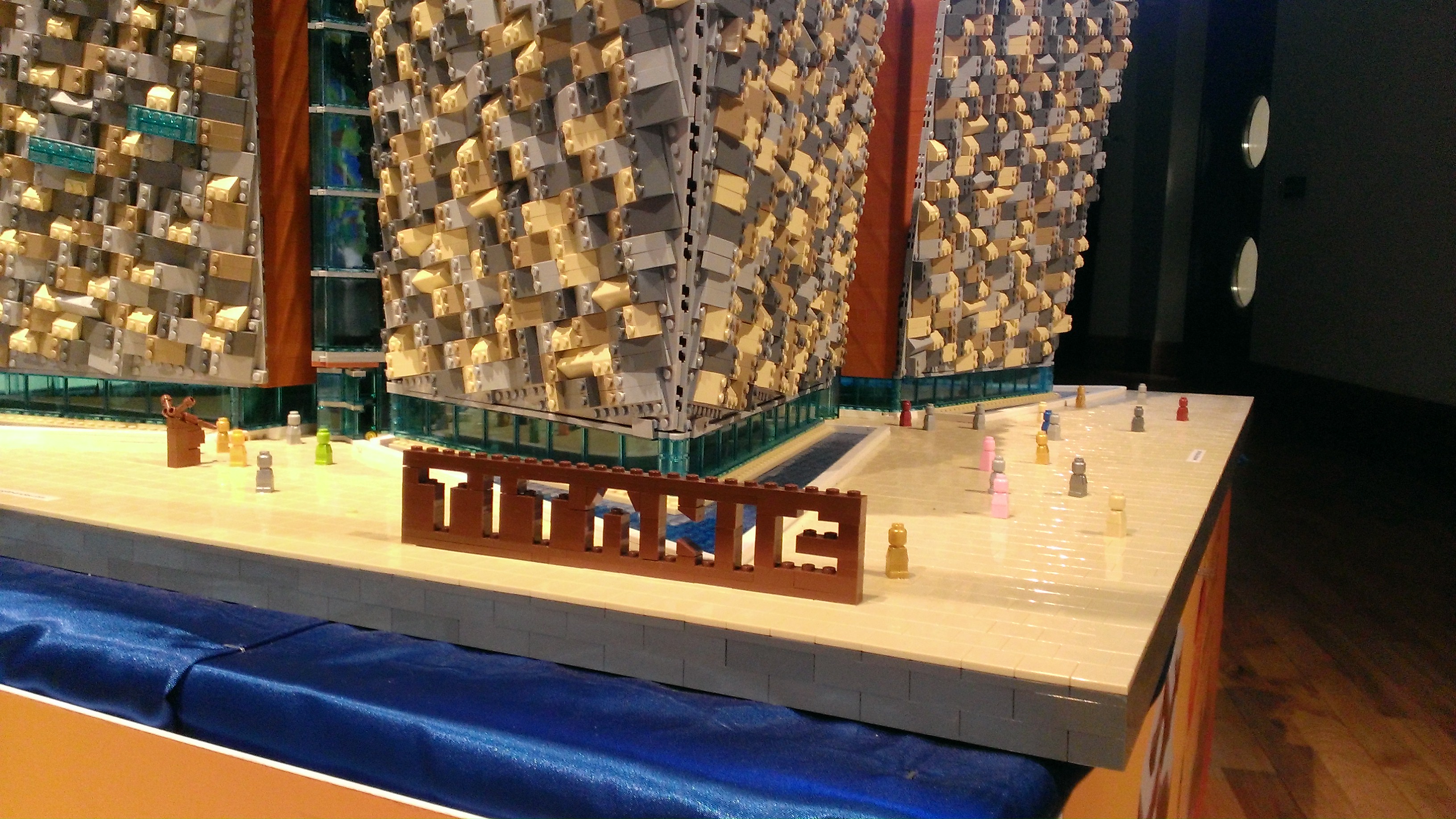 Not content with all the models to look at, there is a Lego wall where you could ‘graffiti’ your name or a picture of a dog with bricks provided. At the other end of the room they have rows of tables with buckets of lego strewn all over them, kids (and adults) building houses, cars, boats and in my little cousin’s case ‘a duck with no arms’. This , along with the hidden mini figure game at St. Pancras gives the whole exhibition a real interactive feel. It isn’t just about marvelling at what others had done with Lego, there is hands on fun to be had as well.