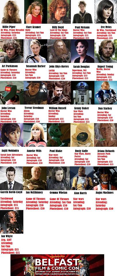 Belfast Film and Comic Con will be taking over the Odyssey Arena in Belfast. Taking place over the weekend of Saturday 25th and Sunday the 26th of October, Belfast Film and Comic Con promises to bring you some of your favourite stars from TV, Film and Comics as well as a whole host of fun activities including photo shoots, panels, autograph sessions and hundreds of stalls full of TV and Film memorabilia to browse.