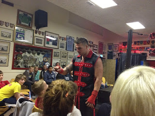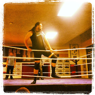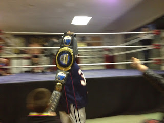 Tonight we’re getting 6 matches and a battle royal. We begin with the biggest guy on the roster, standing somewhere over 7 feet and having spent a while in WWE development, it is easy to see that the guy has come on leaps since the last time I saw him years ago. He has a look, he can talk and by god he can wrestle! He has a lovely opening match verses Bonesaw with the crowd and especially the kids really enjoying this classic good versus bad match-up (or in wrestling speak – Face vs Heel). Then just before the 20 minute break is my favourite match of the night – Darren ‘Blue Guy’ Andrews vs ‘All Ulster Champion’ Christopher Tiberious Banks III. A really quick, crisp and (as much as the low ceiling will allow) high flying affair. These two really put on a show and I would thoroughly look forward to seeing them again.