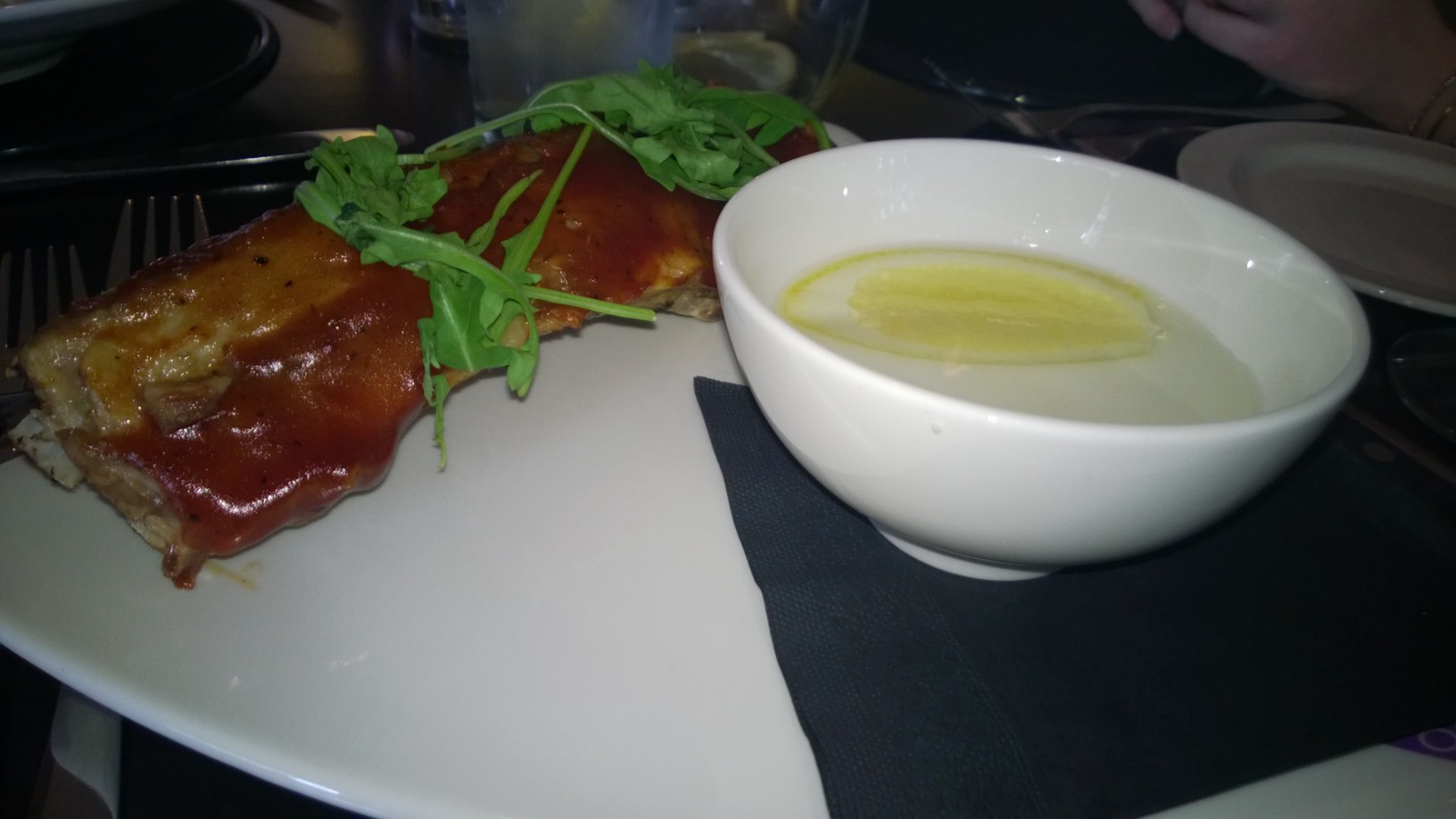 Metro KitchenTo start I had the pork rib with BBQ sauce.  The ribs were of the large variety so there was only two of them, but as I was devouring them with my hands it became apparent that they were actually quite meaty, cooked well and the BBQ sauce was delicious -smokey and tangy. It worked well with the meat but didn’t overpower what was obviously a great cut.