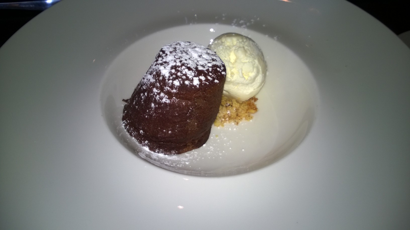 Somehow I managed a desert (although I did share it with my wife).  I had a sumptuously gooey centred chocolate fondant and peanut butter ice cream. I would heartily recommend this, if you still have room, however be warned it takes ten minutes as it’s prepared from scratch. Finally a coffee, I’m not sure the brand but as someone who is heartily in favour of an after dinner coffee instead of an alcoholic alternative, I have to say it was very nice – robust without being offensive.