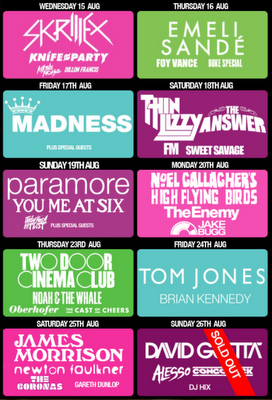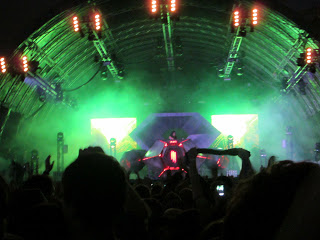 Next up was Kill The Noise, who kept the crowd going until Knife Party got underway. Then, just as the dusk set in, a timer counted down and at around 9.30pm the skies darkened, the lights went up and Skrillex came at us with everything he’s got. If you thought that Knife Party was well received, that was nothing compared to the reception that Sonny Moore and his space ship-esque stage got. You could feel the bass in your toes as Skrillex played his hour and a half long set, complete with lasers, smoke and even some fire. On more than one occasion, the heavens opened, but everyone was either to absorbed in the music, or simply too drunk to care. In the end the rain just added to the drama of the music and it certainly didn’t dampen anyone’s spirits.