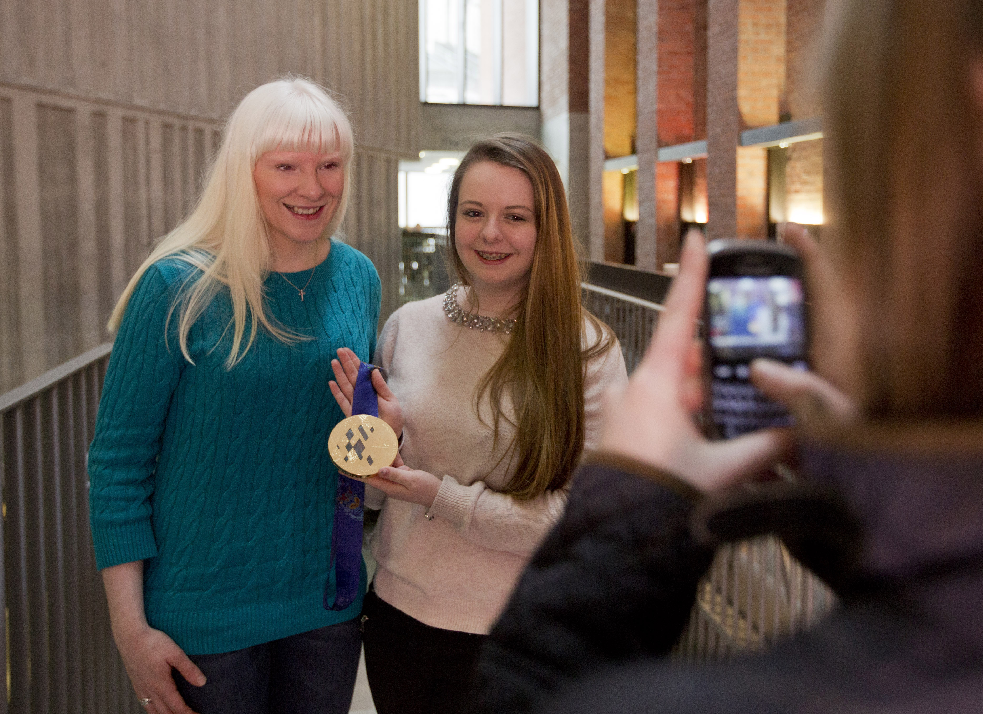 Paralympic gold medal winner Kelly Gallagher visited The MAC today to participate in a special arts workshop with almost 100 local schoolchildren. The workshop explored how young people view their identity as a part of ‘ID 2014’ (Identity Day), organised by The MAC in partnership with Belfast Education and Library Board Youth Service’s inclusion and diversity unit.