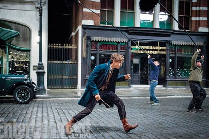 Set in 1926, FBAWTFT as I’m calling it will be J. K. Rowling’s first screenplay. She’s written books and stuff I think and had a fair amount of input in the Harry Potter movies but this is her first go at writing a movie. Oscar darling Eddie Redmayne stars as Newt Scamander (doing his best audition for Doctor Who) and Entertainment Weekly has a little taster of what the film will actually be about as well as some snazzy pics. I’m not sure about you but if they’re going for a period setting they should maybe think of removing those cameras and boom mics. They kind of take me right out of it. Pics and plot below.
