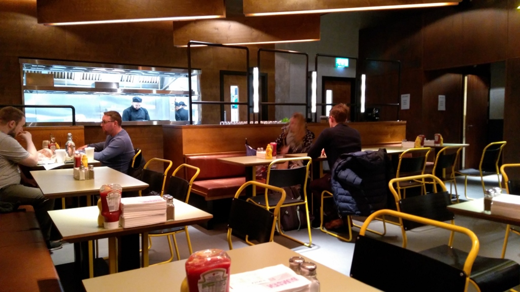 The place is decorated with wood, concrete and luminous yellow and grey chairs. It’s odd but it works to convey that this is fine casual dining, a kind of luxury Scandinavian canteen in a ski hut is the best description I can come up with.