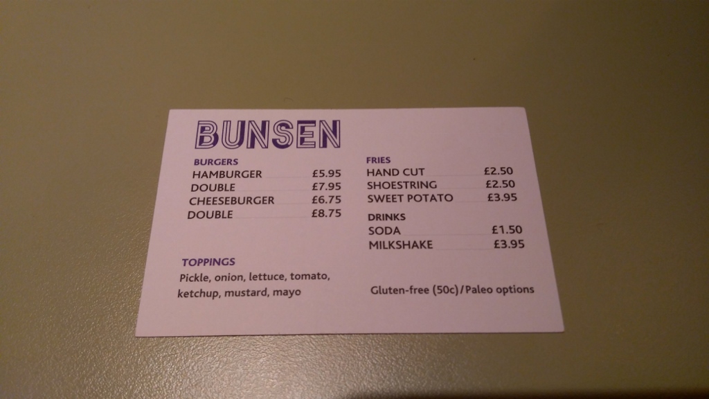 I was very impressed on the whole with Bunsen, I feel they’ve got the decor, ambience, staff and food in the right place for the style of dining they’re going for and the prices seemed a tad lower than I was expecting which is always a bonus. Be warned though if you don’t like burgers this is not the place for you! But for the rest of us it’s burgers ahoy, as far as the eye can see!