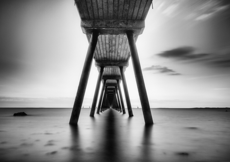 A long exposure creates a mystical atmosphere around the giant oil jetty used to supply the power station with oil from tankers that sail into Belfast Lough