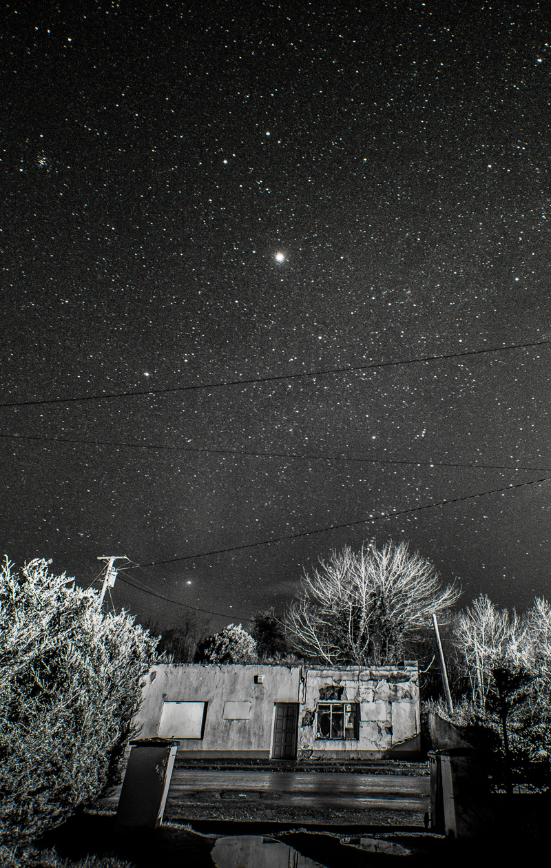 The sky is the ‘star’ in this image! An old dilapidated shop is dwarfed under a blazing night sky.