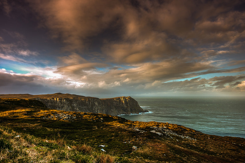 2.Horn Head in Donegal – Horn Head cliffs rise straight out of the water to a height of about 600 ft/180 m on the ocean side of the peninsula. They are an internationally important colony for breeding seabirds. Species include the European shagand therazorbill. It is designated as an Irish Natural Heritage Area and as a refuge for fauna specifically seabirds. McSwyne’s Gun is a blow hole on the west side of the peninsula. Previously, during storms, water could be forced through it to a height of 200–300 feet with a noise that could be heard ten miles away. Although still functional, it is not as spectacular any more. Several people have been killed after getting too close and falling in.