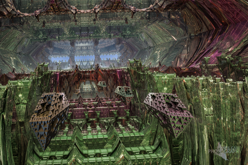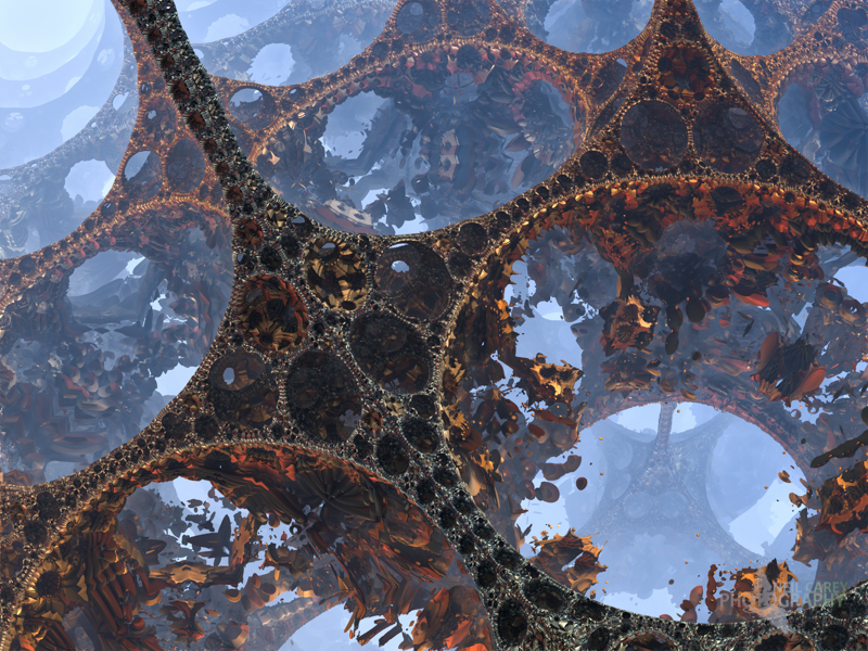 “A fractal is a never-ending pattern. Fractals are infinitely complex patterns that are self-similar across different scales. They are created by repeating a simple process over and over in an ongoing feedback loop. Driven by recursion, fractals are images of dynamic systems – the pictures of Chaos. These particular images are created using mandelbulb 3d software, rendering fractals in three dimensions, the results are often very other worldly and some of them would not look out of place in games like halo, or a scene from star wars.”