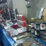 Around 80% of the rest of the arena was filled with stalls selling comics, cos-play, figures, sunglasses, minecraft hammers, Vibranium Shields, etc . Then at the back, in the curve, was a mass of tables filled with the celebrities – ranging from Billie Piper to Kenny Baker – you had to pay between £10 and £25 for an autograph if you wanted one.