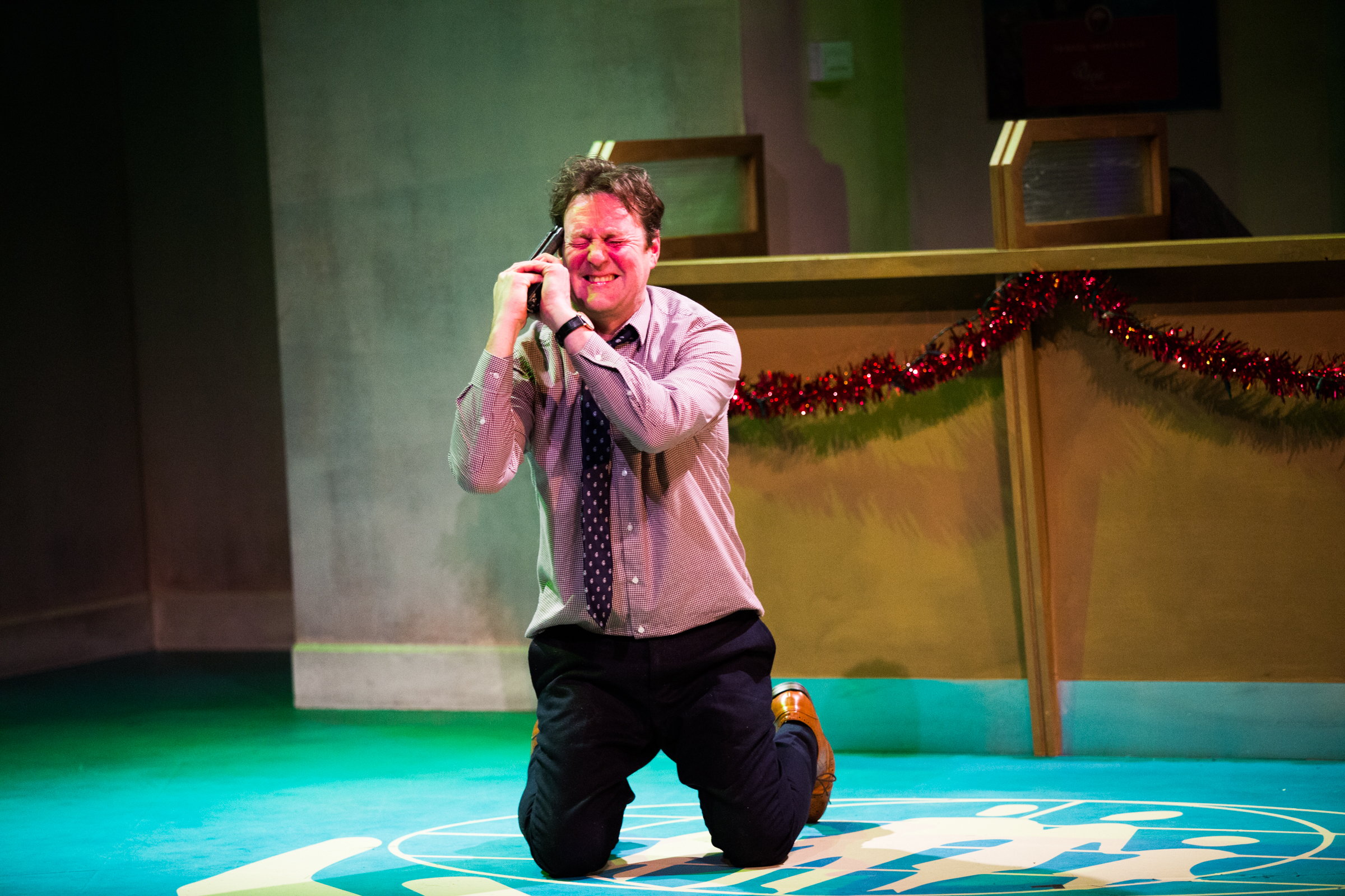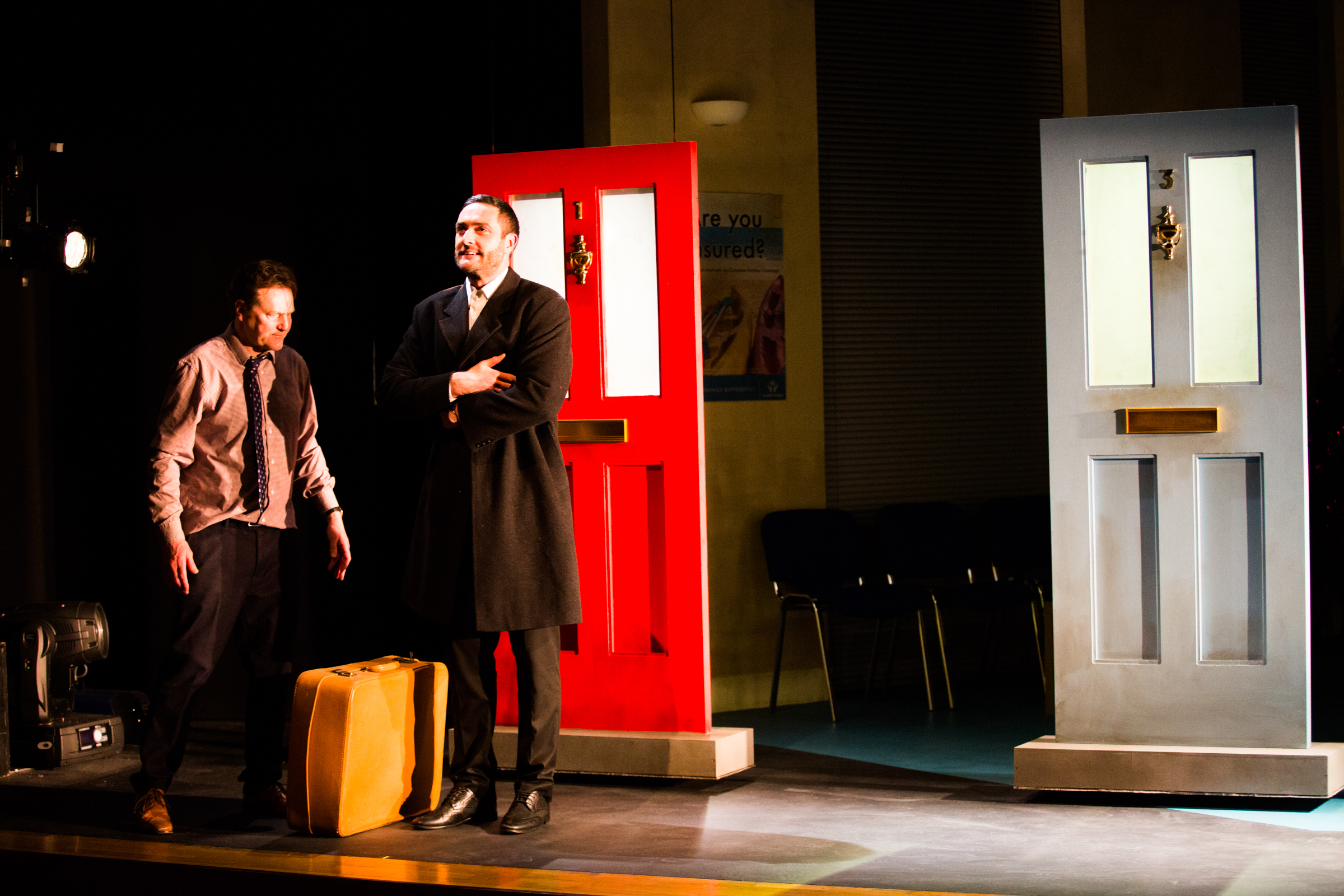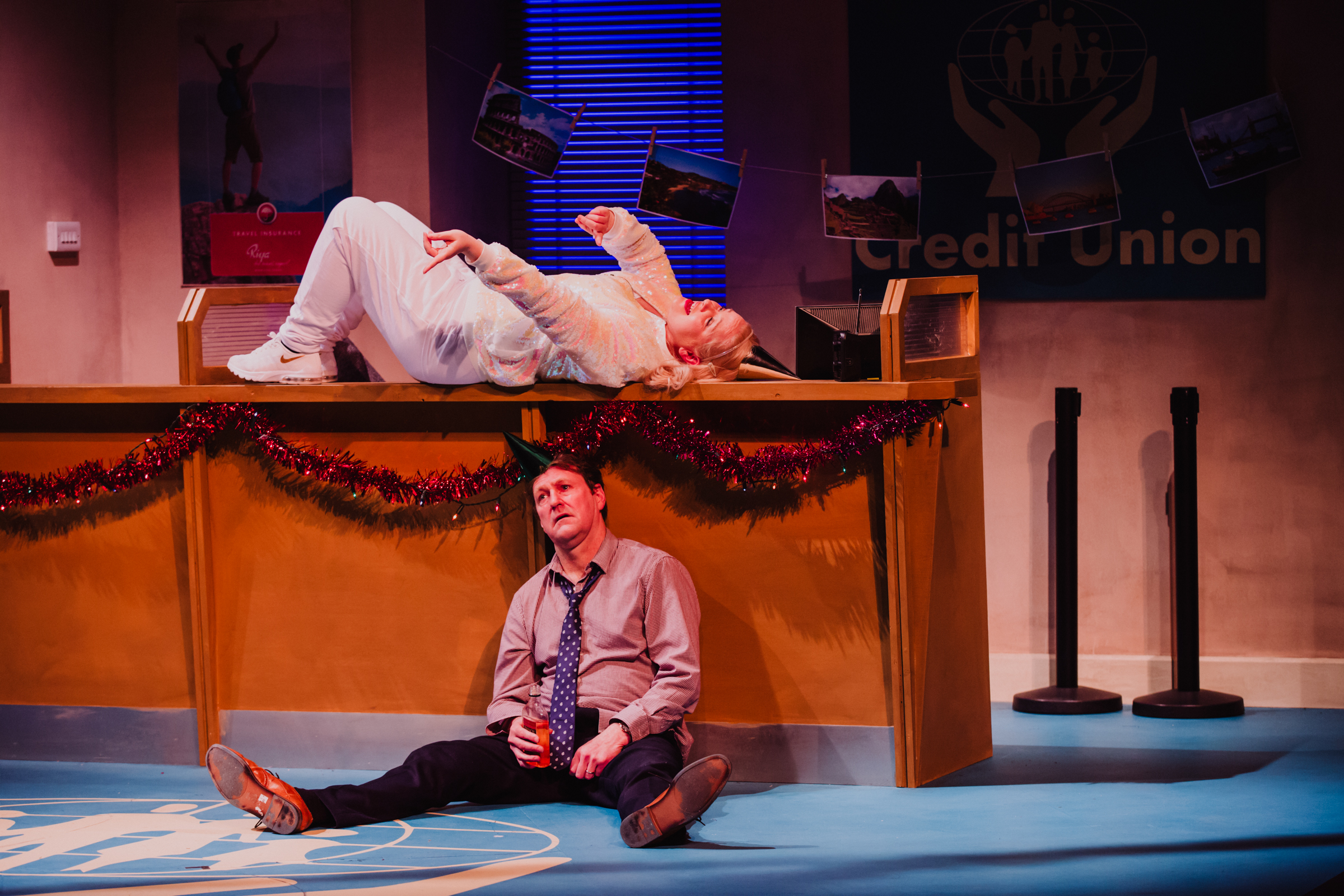 Taking a true Christmas classic like It’s a Wonderful Life and adding a bit of Northern Irish charm is a smart move, and with a simple set representing the local hub of the Credit Union there isn’t too much visual distraction from the serious tale at hand. The only real change of scene is when a row of front doors complete with doorsteps descend from the ceiling, and there’s something nice about the simplicity of the doors that works well.