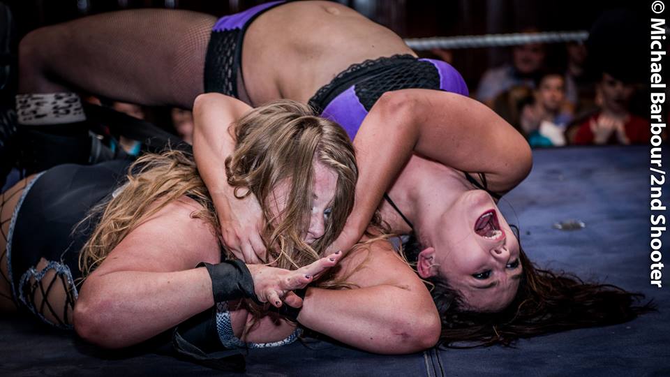 Katey Harvey managed to submit Viper in a scruffy “Strap match”. Both girls tried hard, but this stipulation is a very difficult one to work around, resulting in the bout being a step below their previous meeting. Guest referee Siren complicated proceedings, and aided in a post-match beat-down of Harvey, before Viper nailed her as well. It looks likely that a three-way rivalry is emerging.