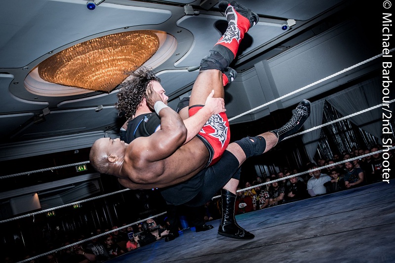 The star power was in full force as the NI Skyscraper Tron bashed heads with ‘The Gold Standard’ Shelton Benjamin in a battle of the big men. Weight & Height vs Muscle & Athletic Ability made for a hard hitting and ferocious match, with at points Shelton letting his ability get the better of him as Tron caught him coming off the top rope and scuppered his high flying attempts before laying him down with a side walk slam. Shelton was able to recover quickly however and kip up, he bounced off the ropes to lock Trons neck in and land his finishing move ‘The Paydirt’ for the 1,2,3. He made a quick speech afterwards about how the bout was as demanding as it looked and Tron being a tough guy. He also praised the NI crowd, because y’know, we’re awesome!