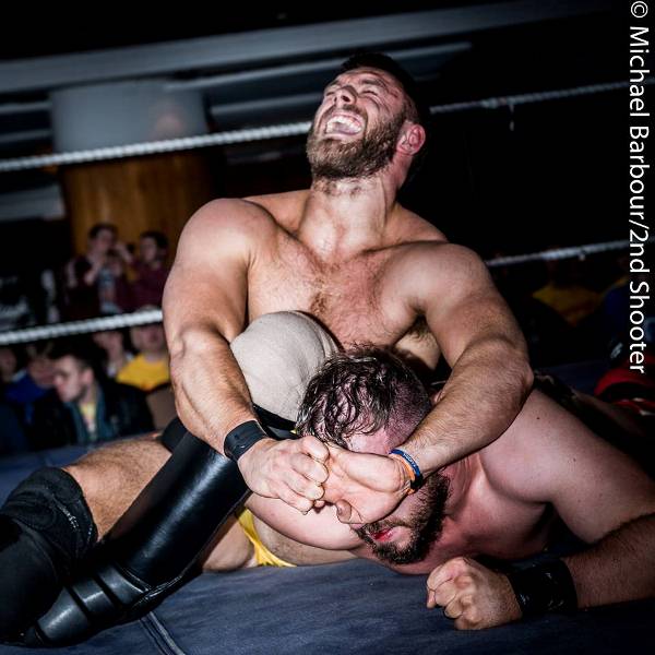 The main event saw PWU Champ Tucker face No.1 Contender (and good buddy) Luther Valentine in a bout that looked fairly evenly matched on paper. As evenly matched as they looked, they proved to be. A 30 min Iron Man match that truly defined the phrase ‘Back and Forth’. Holds and counter holds, Slams and counter slams were the order of the day and some damn stingy looking slaps mid match. A Swanton Bomb, a Pedigree, near double count out and numerous 2 counts left us ultimately looking at a 0-0 draw at the end of the 30 minutes. No pins, but a great wrestling match that had the crowd chanting ‘This Is Awesome’ from the early minutes However it was in the closing minutes that it all unravelled as the lights cut out and ‘Not-Contracted-By-PWU’ wrestlers Damien Corvin and Bonesaw appeared and beat down Tucker and Luther just as their match had ended. As they left (and left us speechless) Tron charged down to stick the boot in on an already deflated Luther Valentine and throw his frickin’ Platinum brief case around again. Shelton Benjamin must’ve taken umbridged to this as he flew in to chase the cowardly Tron out of the ring clutching his case like it where a tiny baby.