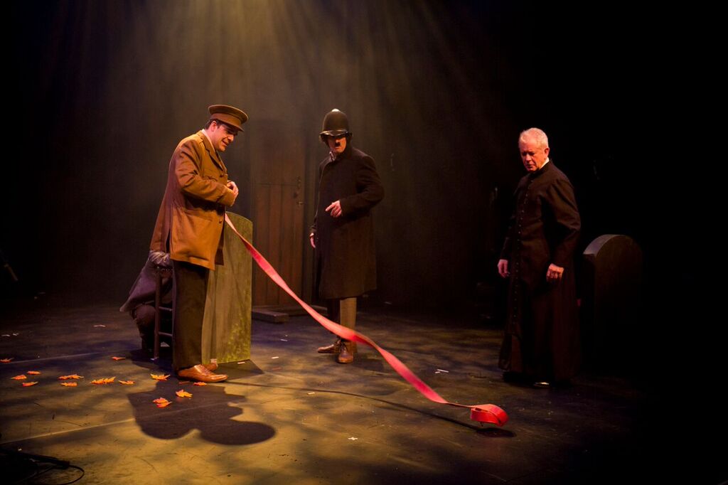 Based on the 1962 book by Spike Milligan the play is set in 1922 at the time of partition in Ireland. The Border Commission, in a rush to get to the pub before it closes, has drawn the border straight through the tiny Irish village of Puckoon. This inadvertently leads to various anomalies, like part of the bar being in Ulster and having cheaper beer and Catholics ending up buried on the wrong side of the new border. What ensues is a riotous series of situations based loosely around two bungling IRA men trying to smuggle arms in a coffin while the bodies are brought back to their own side of the border.