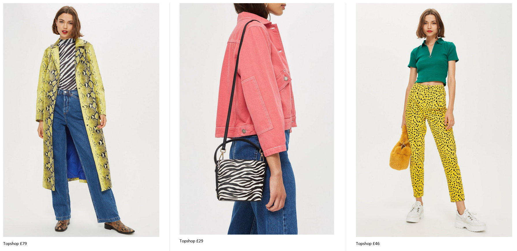 For those who dare to go bold – try mixing different animal prints like the below snake print coat over a zebra print top or by rocking a full animal print co-ord. Or for a subtler approach, try breaking up the patterns by pairing a zebra print bag with a leopard print belt or a snake print skirt or boots.