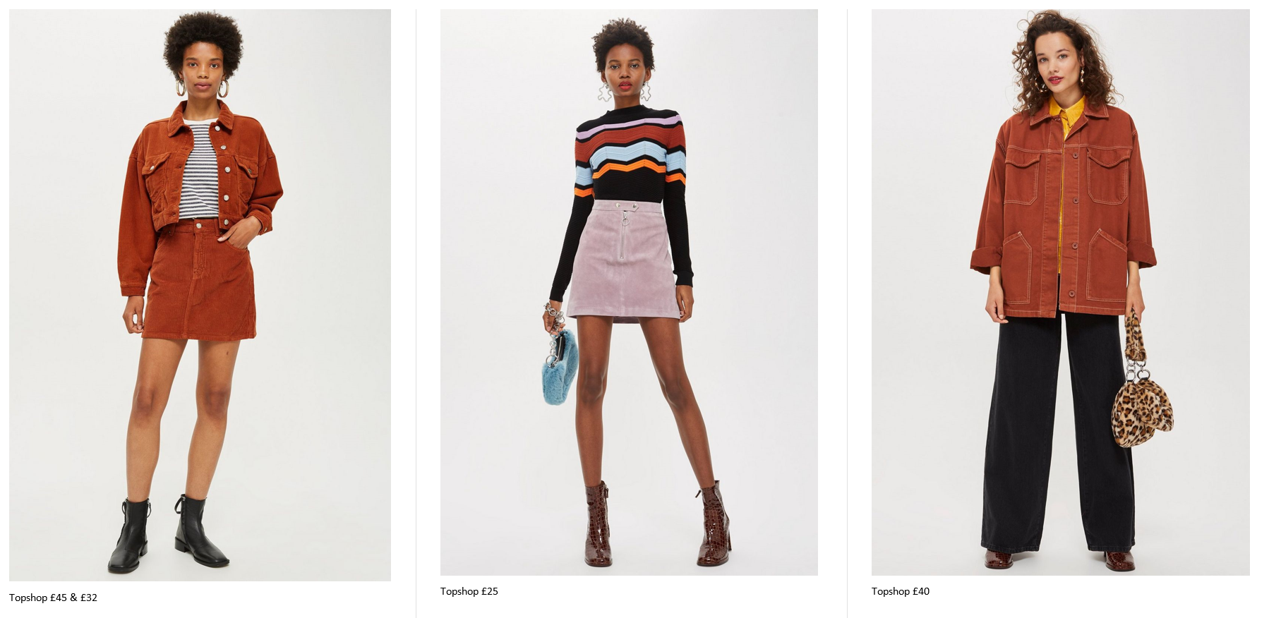 Rust is the colour that epitomises autumn. Not only does it suit every skin tone and hair colour (even us redheads!), but it actually works well with loads of difficult colour combinations. The corduroy two-piece below for example – this would look gorgeous with a very SS18 on-trend polka dot top or even colour-blocked with pastel lilac or sky blue to give it a lift. This trend has plenty of room for experimentation in these tail-end weeks of summer right through to December with similarly-toned jewel shades such as teal, mustard, burgundy and even head-to-toe rust.