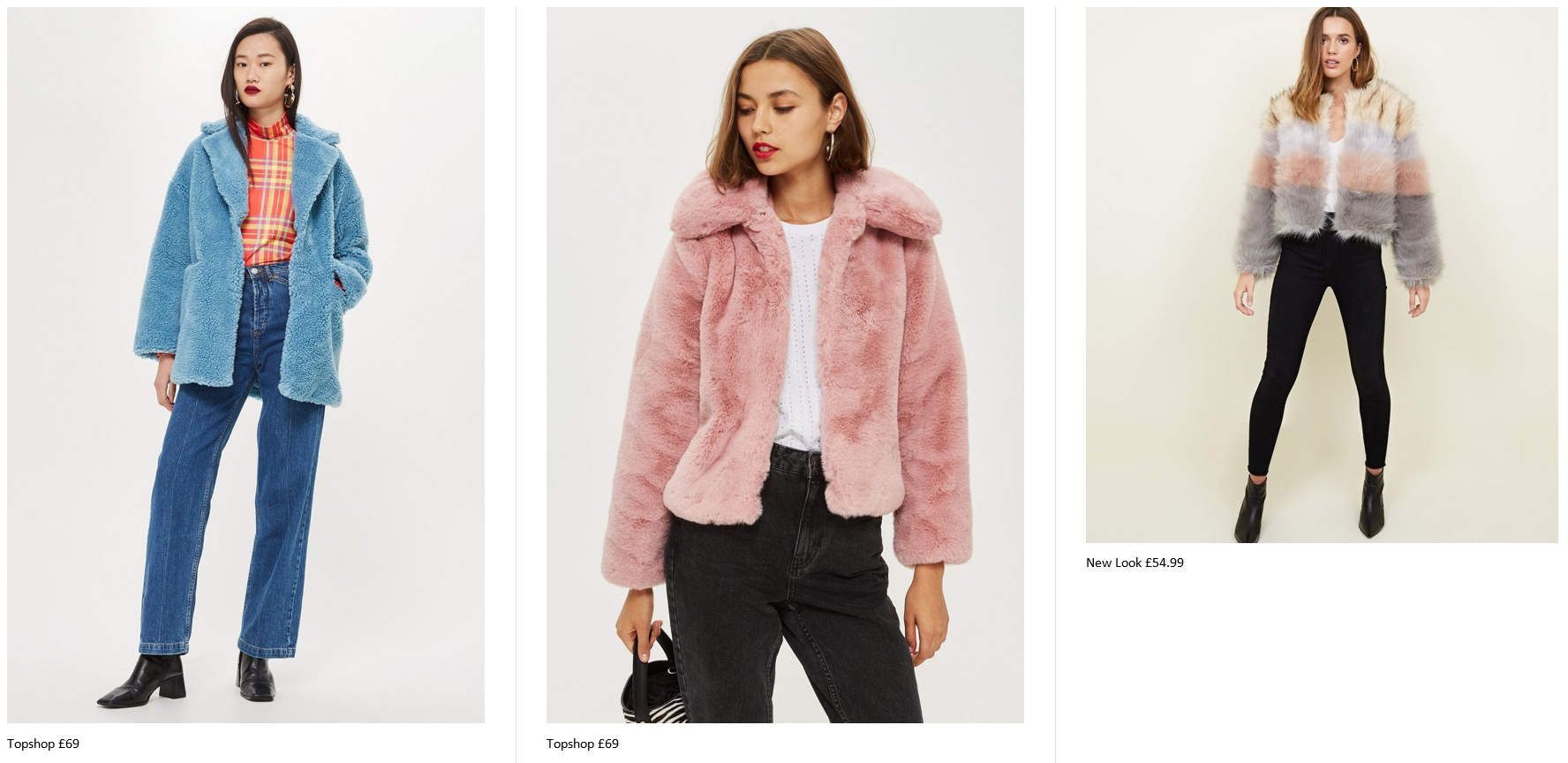 If the below coats don’t make you want to snuggle up and pray for chillier weather – then I don’t know what will. Think plush, fluffy, fuzzy and faux fur – basically anything that resembles a teddy bear as this will add a touch of enviable cosiness to your outfit. If you’re wanting a timeless look with the added luxurious texture, go for either a stone/tan/black colour to ensure it will go with your entire wardrobe. If you’re wanting something head-turning and unique – this season it is all about pastels, especially pink and blue hues. While it isn’t cold enough to brave these coats at the moment, come September time simply pop on over a t-shirt to start making the most of the trend.