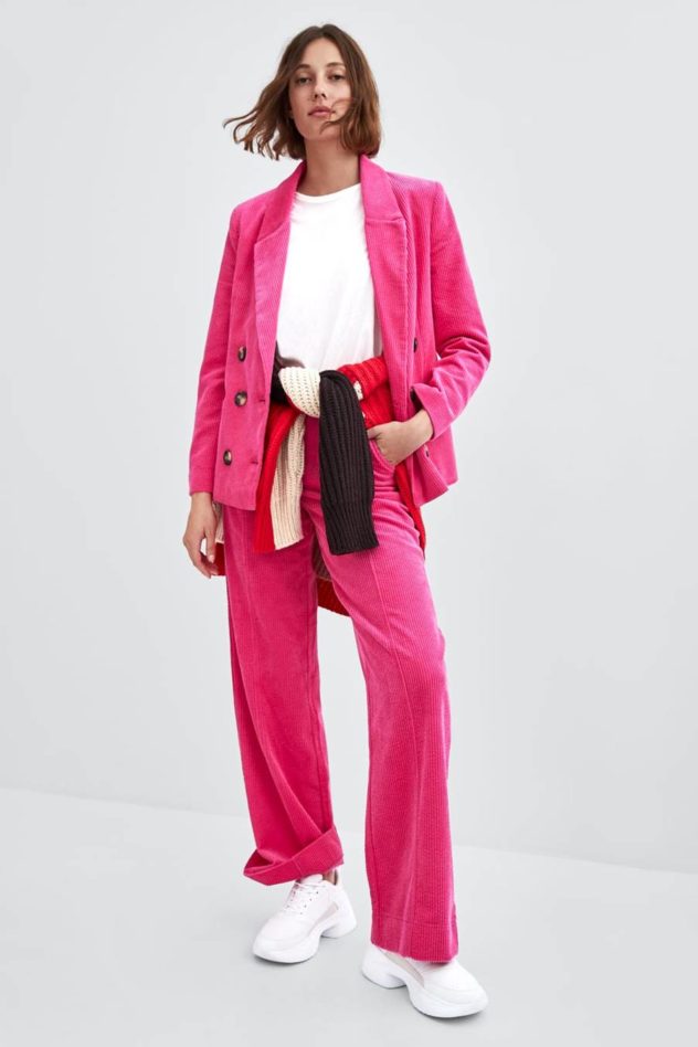 Also, because of the different variations of thick and thin corduroy, you can make your outfit as subtle or as bold as you like. To add another level of interest, clash this texture with opposing ones such as a faux fur coat, cable knit jumper or silk blouse; or with different coloured corduroy pieces to embrace this concrete trend.