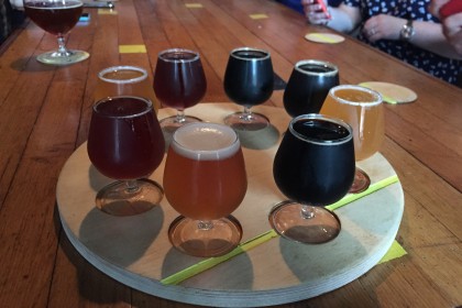 We were there for a Yelp Belfast social event (just an excuse for a few drinks with friends) so when we were all seated down we were brought out a platter of beers – I think they call this a flight. Eight beers are brought out in little brandy-type glasses for you to try. The barman, Blake gave us our key (which helps you keep track of which beer is which) and explained in really good detail what made each one special. He really knew his stuff and was good at explaining the beers to a complete craft beer-novice like myself. You can check out Brewbot’s tap list here. Only one of the beers was brewed by the Brewbot itself, with the others being imported craft beers from other brewerys. The tasting platters are four for £6 or eight for £12.