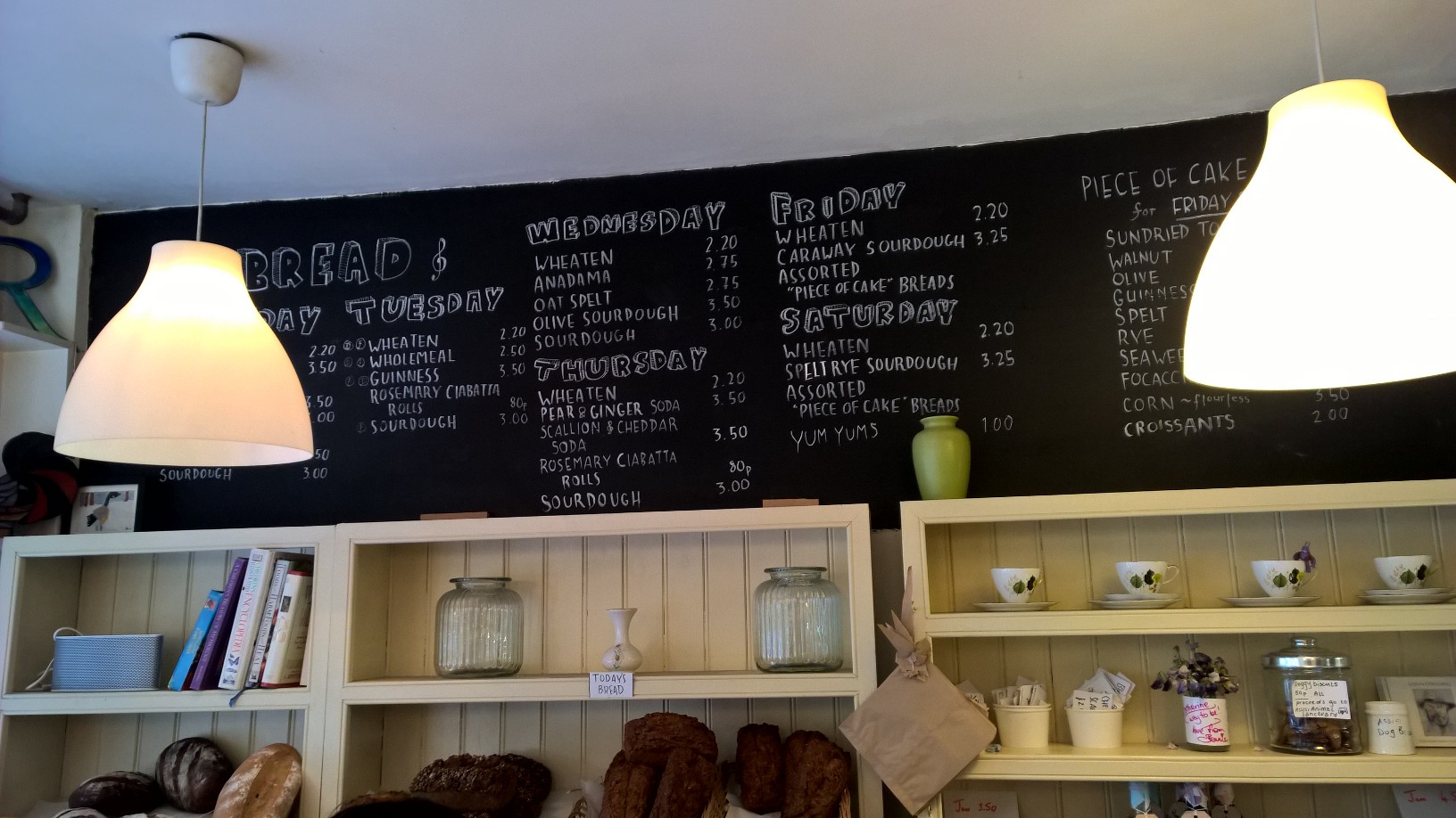 From the outside it’s quite unassuming, a colourful sign with a large window and a big wooden bench underneath, inside are a few more tables and chairs, but to be honest they take up a bit too much room and with how busy the shop was I couldn’t help feel the space might be better used for displaying the breads. The shop was bunged, the queue reaching the door and as we were in line we passed an insane amount of bread. I have to say if taste was based on looks then this was a winner. The bread all looked so good, and then up at the counter sat all kinds of sweet treats and tray bakes and a list all over the walls of the things they make. Different days sees them doing different speciality breads so I guess you should pick your days to visit wisely. I have to mention the smell as well, the smell of fresh bread with a sweet tang mixed with the scent of their coffee was heavenly.