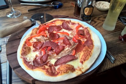 Fratelli sits on the graveyard of many, many restaurants that tried, and failed, in the same spot – Restaurant Victoria by Raymond McArdle and The Malt rooms being the most recent.  You know the one, it’s beside Red Panda and opposite the Europa. Fratelli is the sister restaurant to Fratelli at the Galgorm Hotel, so one would imagine that they know what they’re doing, in reality it was a mixed bag really.  The Menu was impressive and detailed and looked really interesting, the server was attentive and place settings and décor where all very well done.  The odd promotion on that night was ‘Ladies Night’ were female sexed people can get a meal and a glass of wine for £12. I wasn’t female sexed so I had to go a la carte.  The food however failed to live up to expectations, whilst it was good it wasn’t great.  Being an Italian I decided to try an Italian staple – pizza, I had the ‘Pizza Del Giorno – Fantastica’ quite the claim! Bacon, pepperoni, ham, red peppers and salami, a real meaty feast on a pizza.  The ham was more like pulled pork and it was slightly less well done in the middle making it a little soft. I expected more flavour from the tomato base and the meats, that never really came through.  It wasn’t as fantastica as i’d hoped.  Two others in our party loved their meals and one other didn’t like his, so like I say  mixed bag.