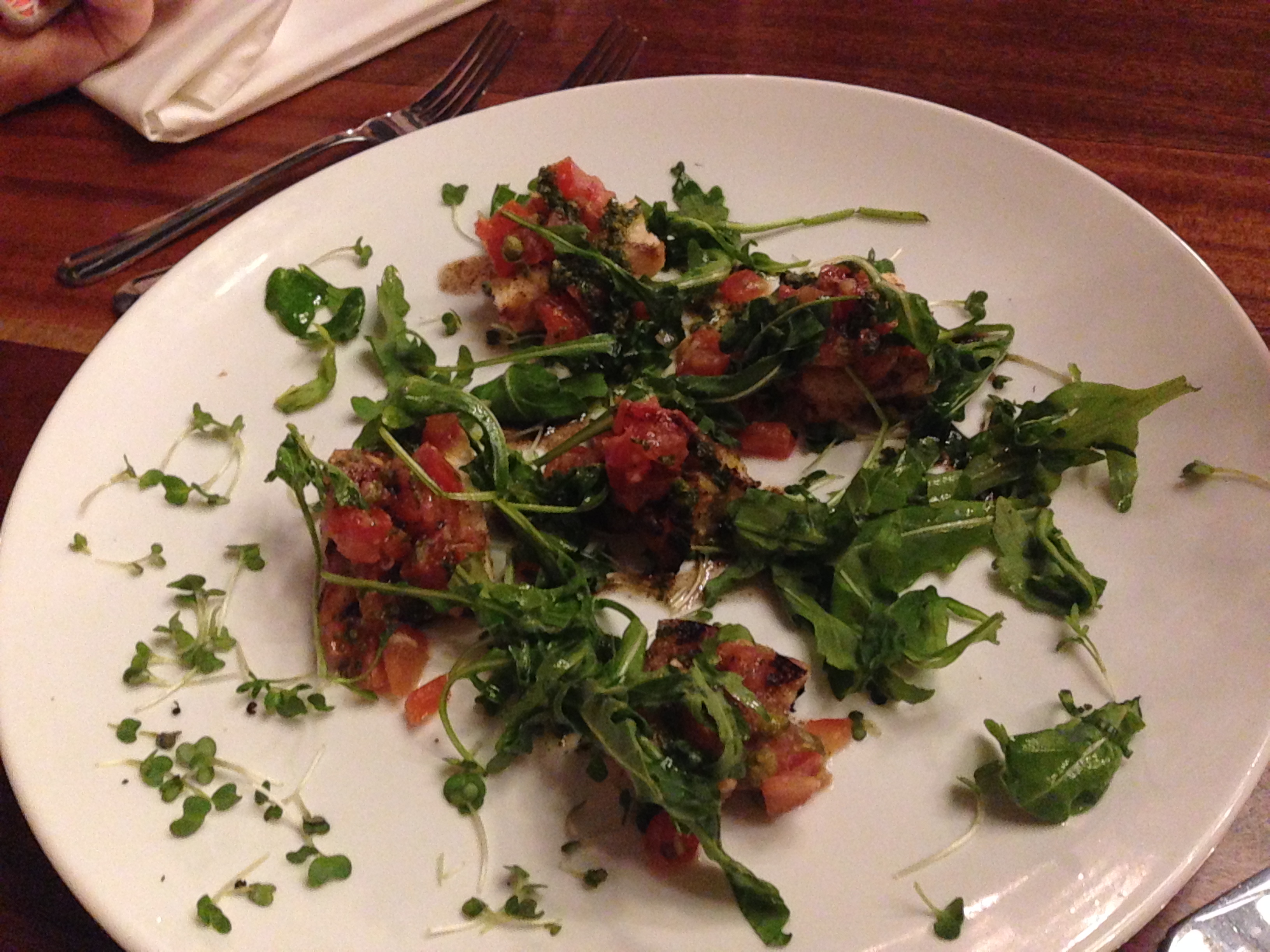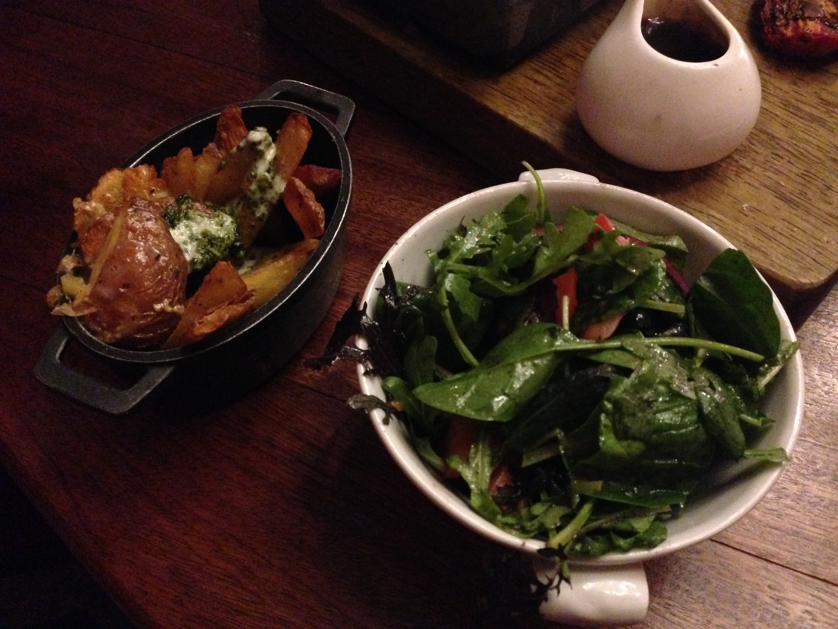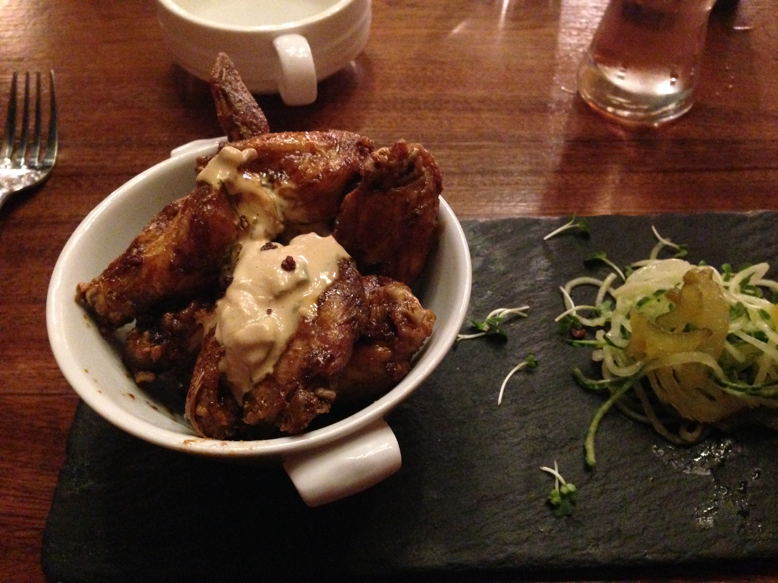 In terms of drinks, the menu has tons of craft beers and ciders and interesting local fayre to have a look at. You can have a look at the menus available here. We ordered off the a la carte menu which you can see here. There’s quite a variety on the menu, with everything from steak and seafood to pork belly and salads. To start we tried the hot ‘n’ sticky chicken wings and the bruschetta bites. The bruschetta was delicious, little bite sized pieces covered in tomato, basil and capers – although the tomato had been sitting on the bruschetta for a little while and the juice had soaked through, making it soggy rather than crispy, but the flavours were definitely there. Next up, the chicken wings. Not exactly hot (in fact thy weren’t spicy at all) or sticky, come to think of it, but they were amazing. I’m not the biggest fan of traditional chicken wings, but I took a chance on these and it was so worth it. Not your usual buffalo wings, these were something completely different, the skin was crispy, the meat was succulent and they came with the most delicious creme fraiche style sauce that tasted oriental and was extremely more-ish. Words don’t really do it justice, you need to try these wings for yourself!