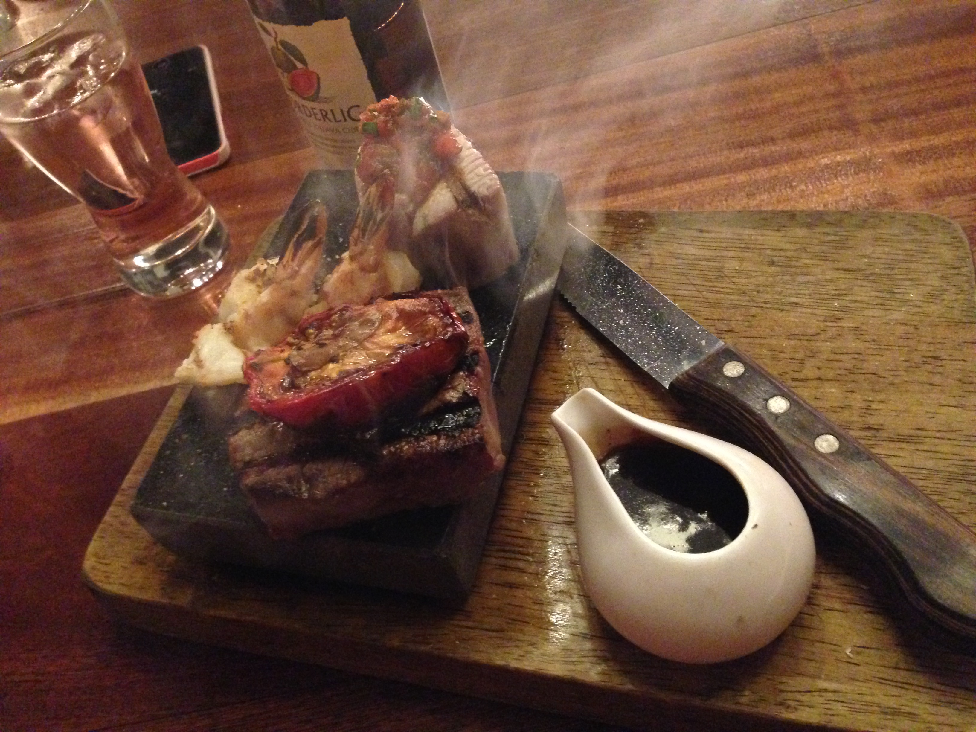 They had run out of the bigger sharing stones by the time we got our main, so they split each of ours up onto two stones. This wasn’t really a problem and actually made it easier for everyone to have a go at cooking their own meal on their own stone. The rib-eye and sirloin were great cuts of meat, one served with wild mushrooms on top, and the other with a stone cooked tomato – a simple, but delicious accompaniment for each. I’m not the biggest fan of seafood either, but the tuna steak and the prawns were definitely the highlight of my meal. This is definitely the way to try out foods that you aren’t sure about as you can cook them exactly to your liking. The meal also came with four sauces – a whiskey peppered sauce, garlic and tarragon butter, bernaise or rich pan jus. Each was subtle enough not to overpower the meat, but tasty enough to make the meal more interesting. This is definitely a great experience, especially if you want to make the night a special occasion.