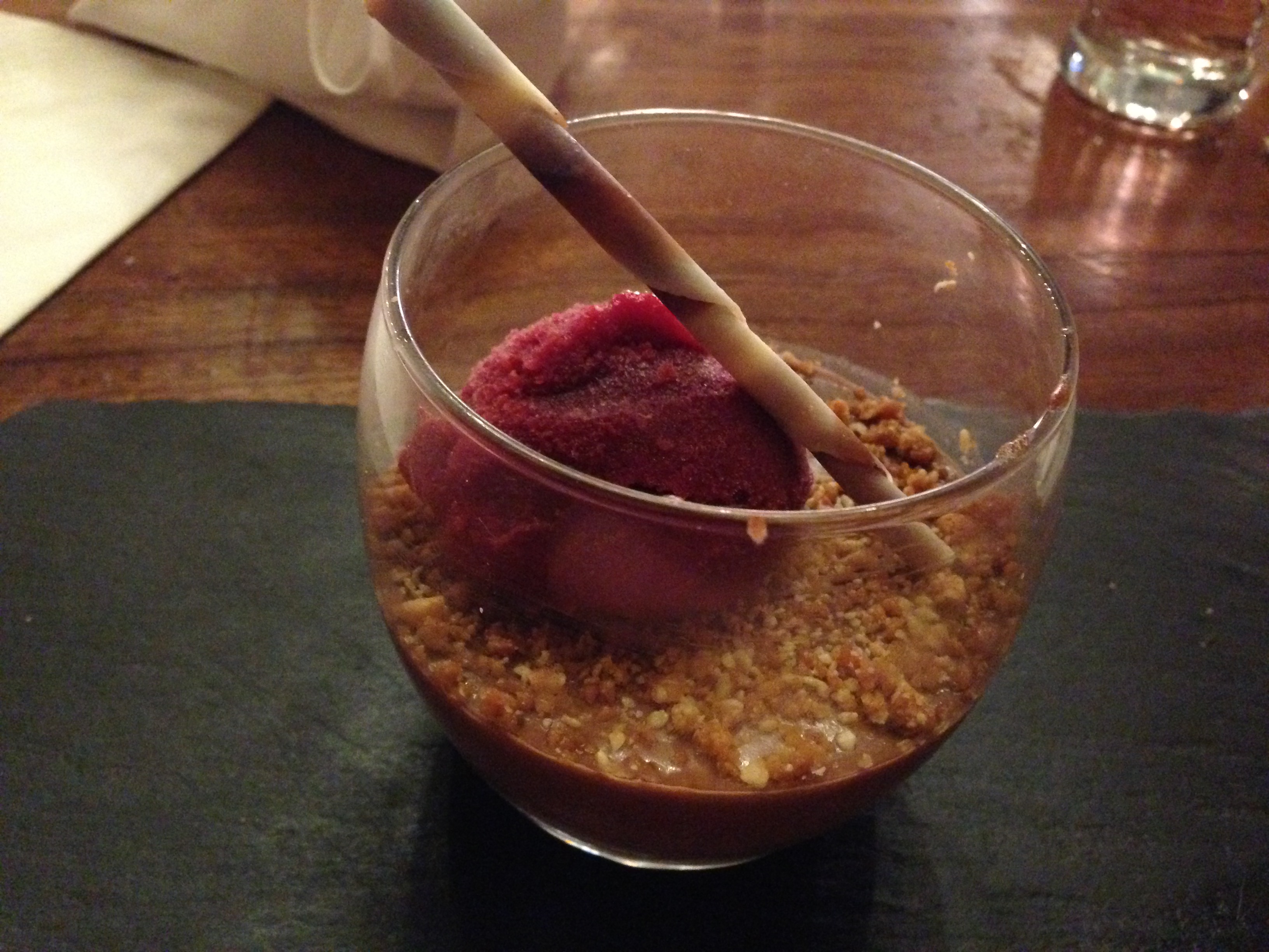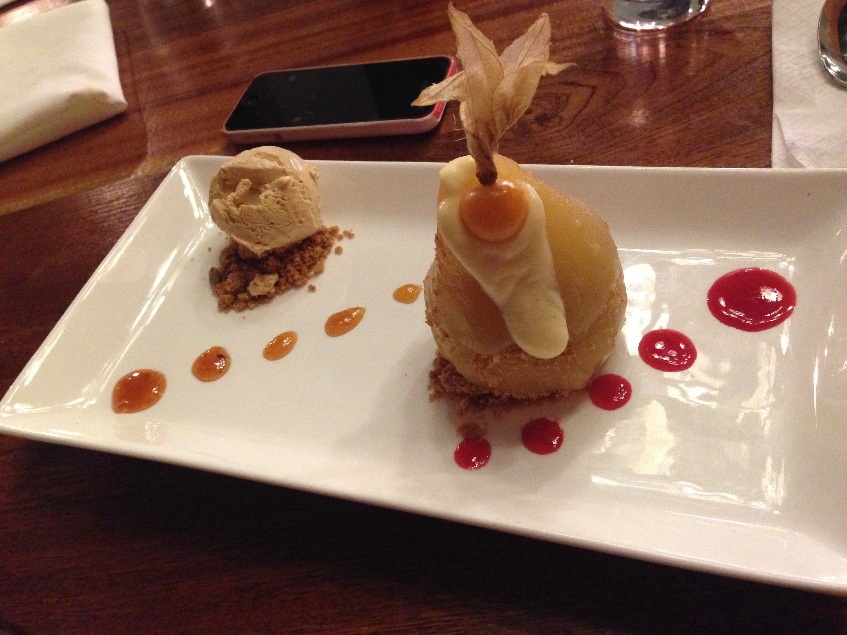 For dessert we tried the cheese board, the cider poached pears, which tasted great, although they were served cold, which wasn’t expected, and the dark chocolate mousse which tasted delightful. The mousse was served with a cherry sorbet which offset the sweetness of the chocolate perfectly.