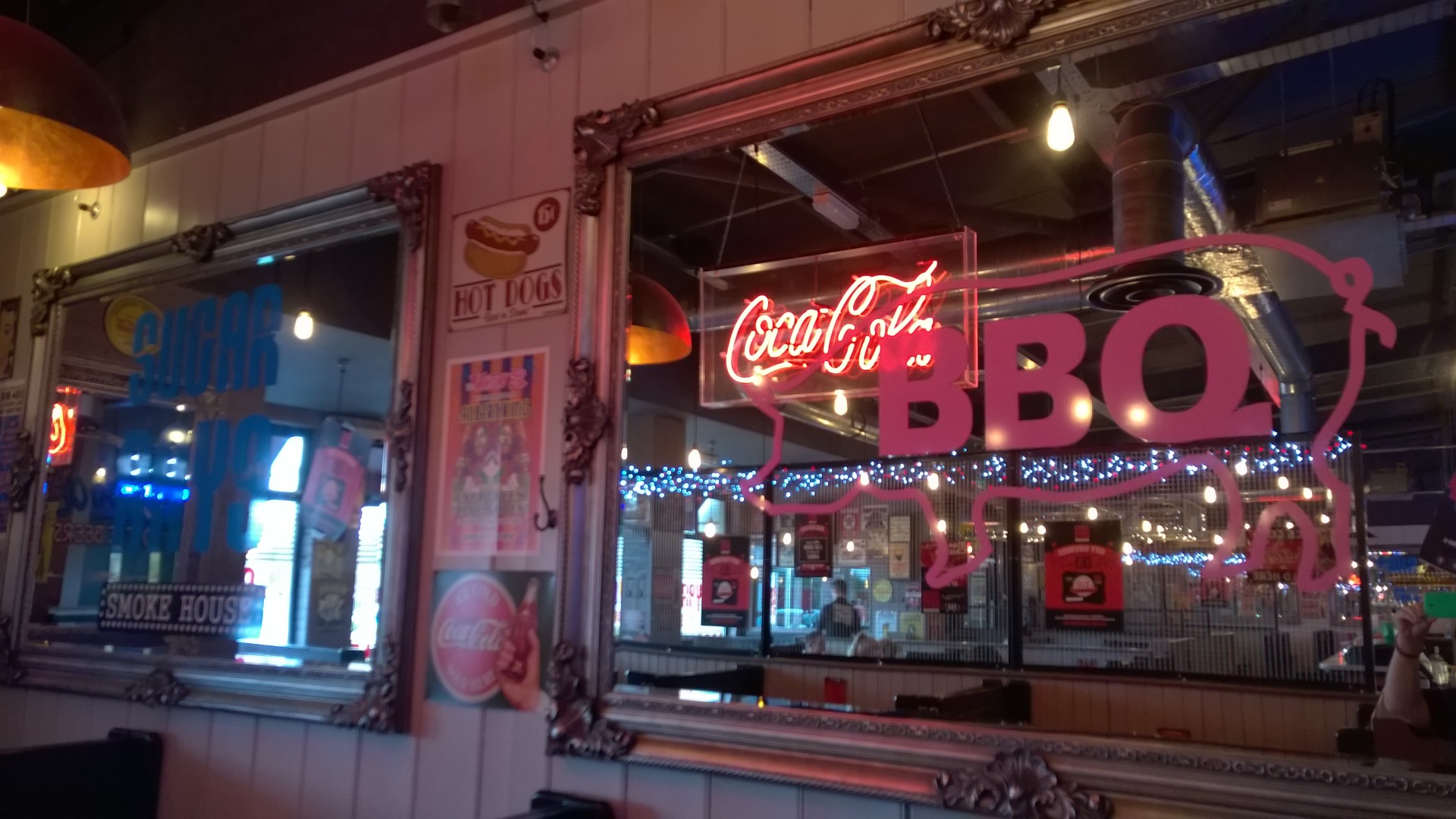 From the outside it looks like the rest of the units that are in the industrial estate/entertainment complex with a few colored lighting signs in the windows and a snazzy awning. Inside is decorated like a southern American BBQ diner – it feels like a cleaner version of the real thing. Service is swift and polite with our server being more than adequate and helping us get sorted as we had a toddler and baby in tow.