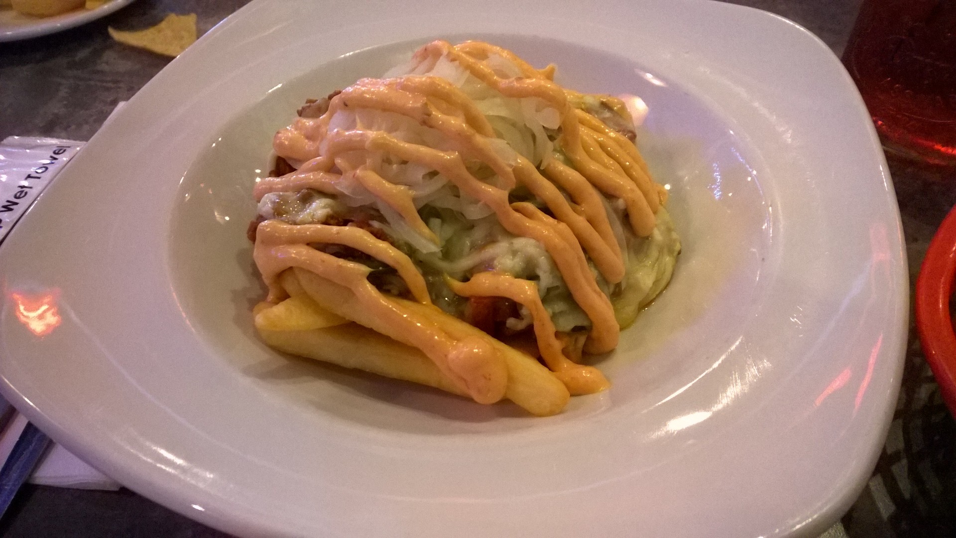 The sliders were 2 small fresh glazed buns filled with delicious BBQ sauces that covered pulled pork, they were served in a plastic basket and the rest of the space filled with tobacco onions. The taste was great, smokey, slightly sweet and tangy. The pork was obviously cooked for a while and was succulent and juicy, a nice bite without being chewy. The buns were complimentary too, nice and fluffy with just a hint of sweetness. The tobacco onions were crispy and plentiful, a great addition to what would have been a hefty starter. The chilli cheese fries were slightly larger than I would have liked as I prefer the skinny fries usually associated with ‘Americana’. These were chunkier and covered in a tomatoey, slightly hot, meaty chilli, then coated in cheese and onions with a taco style sauce. The onions were partially fried and still had a bit too much of that fresh onion brashness that I didn’t like at all. They should have been fried off properly as eating them was like a paired down version of biting a raw onion. I removed these though and the rest was grand. A really beefy, cheesy, spicy dish that certainly would satisfy even big appetites.