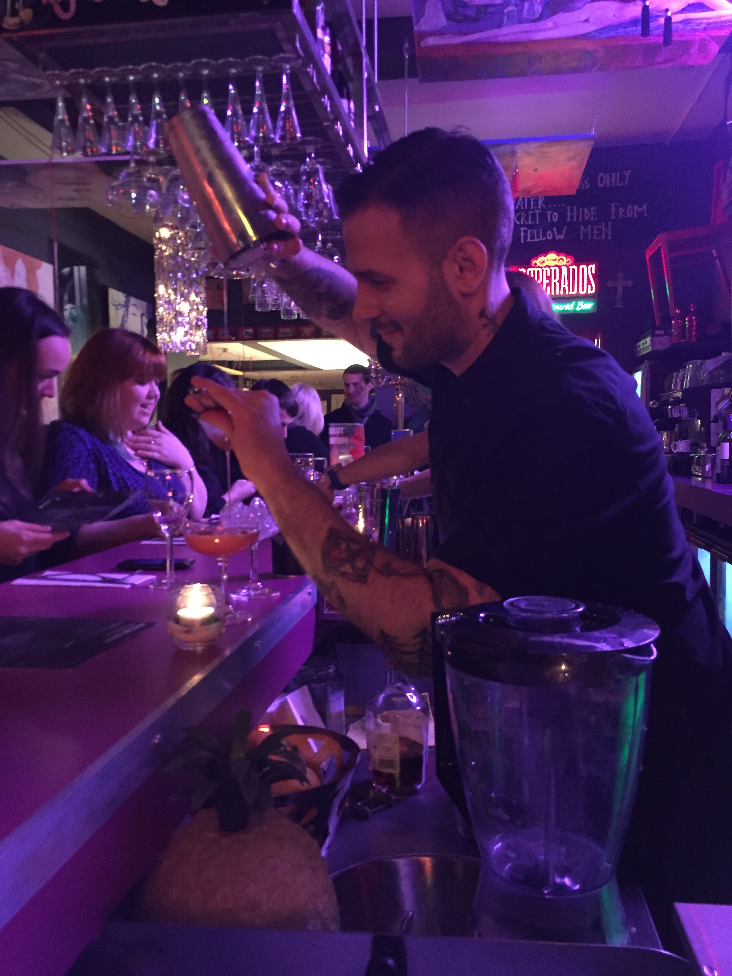 Birdcage BelfastThe first point to mention is that the decor is really really interesting: there’s a serious Spanish/Mexican influence here with the Day of the Dead murals (painted by barman Marco), sugar skulls and little Timanfiya Devils dotted around the place, but it’s not cluttered or kitsch, there’s a nice balance of trinkets and it’s interesting to look at while you’re having a drink, rather than busy or too much.