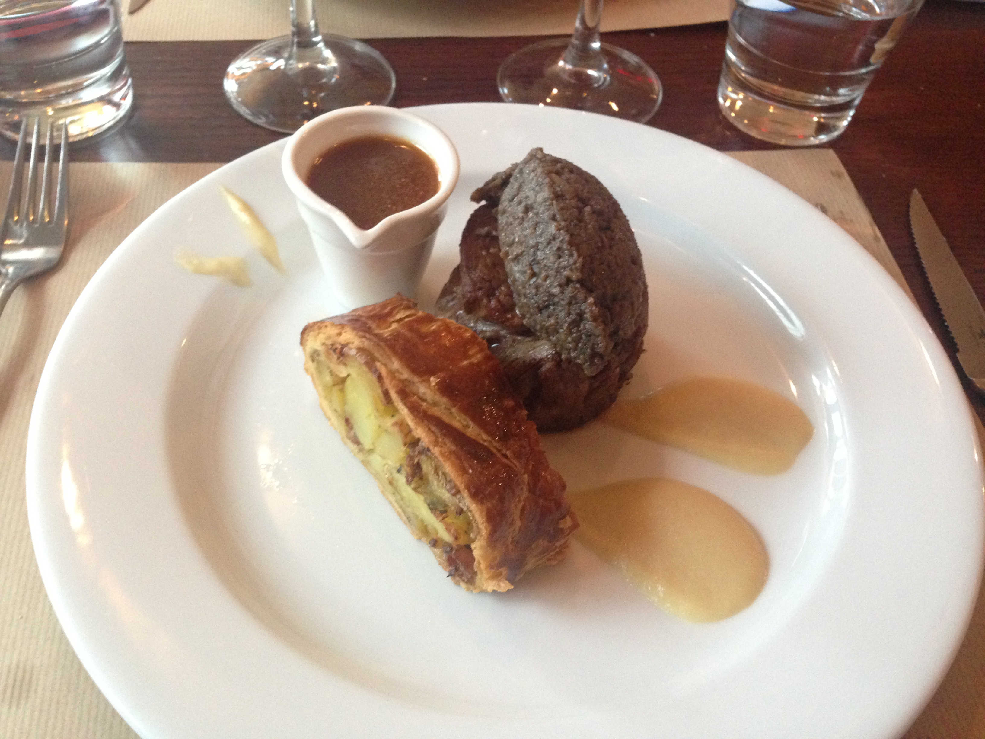 We also tried the Bœuf Bourguignon (beef bourguignon) which melted in your mouth and was presented beautifully, and the Lapin (Rabbit) which was stuffed with black pudding, served with buttered parsley potatoes, broccoli and radish.