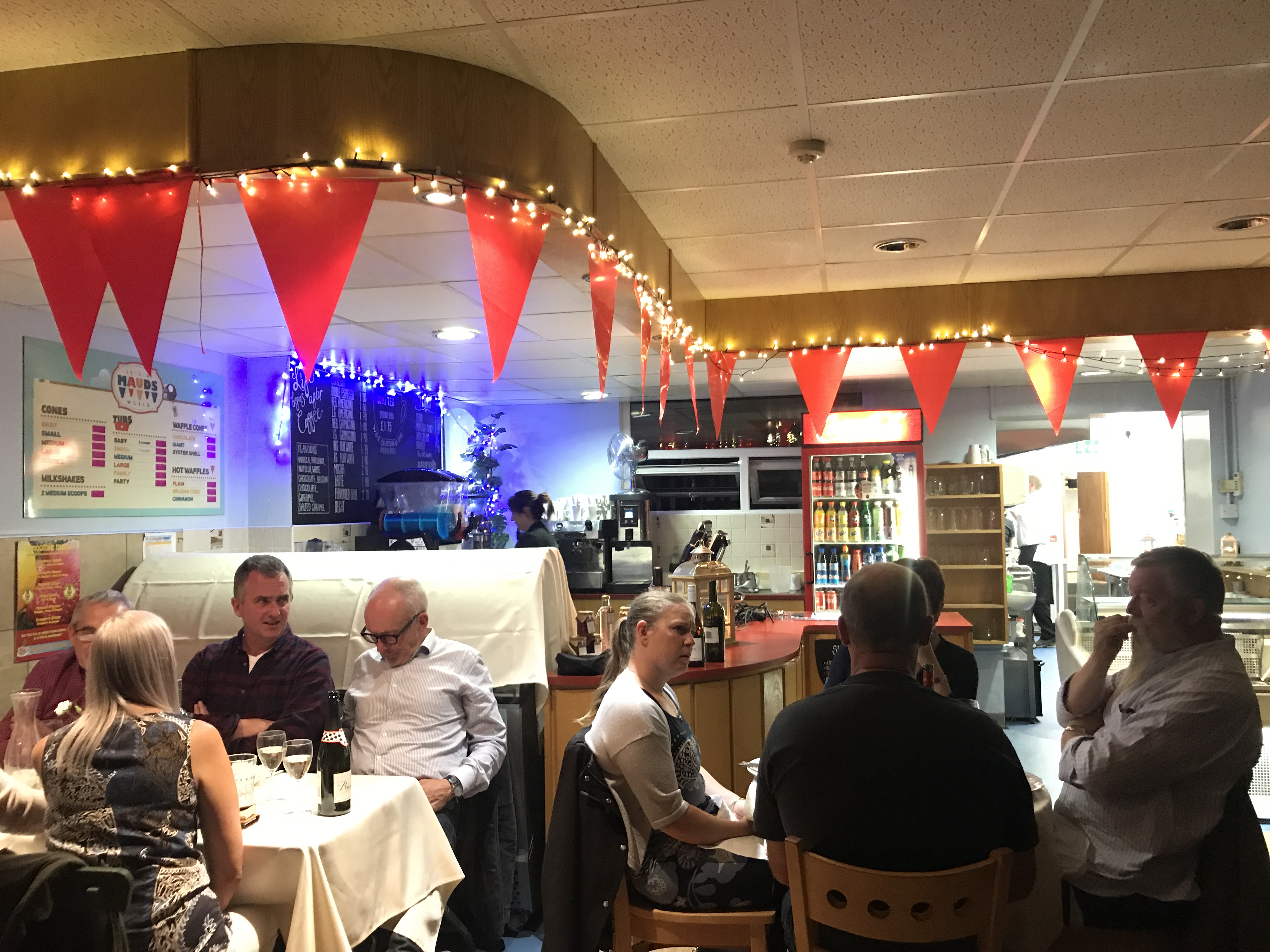 Growing up in Islandmagee means I’ve spent a fair chunk of my life in Whitehead’s Coastal Coffee, especially back when the building housed a VHS rental shop (yes, there was a time before Netflix), but as we enter the familiar surroundings of the cafe, I was surprised to see the room transformed into an intimate bistro with white linen table cloths, fairy lights and seating for around 35 hungry diners. The usual trappings of Coastal Coffee‘s day job such as the ice-cream counter and slushy machine are still visible, however, great lengths have been taken to make these fade into the background for Bistro Nights Whitehead’s pop-up evening.