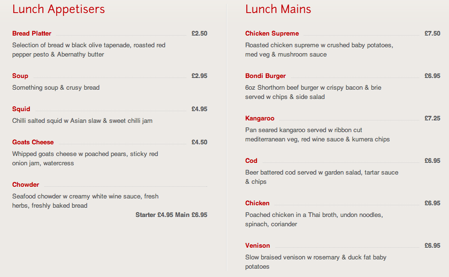 Uluru Armagh Menu   Uluru Armagh MenuThere’s also an early bird menu and a dinner menu available, alongside vegetarian options and a Sunday saver menu.