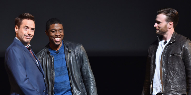 Marvel has announced that Chadwick Boseman has been cast as T’challa AKA The Black Panther. T’challa is from the fictional African country of Wakanda. Here’s a picture of the man with some of his Marvel contemporaries. Can you figure out which of them is Chadwick without me telling you that he’s the black guy? Here’s a hint, he’s the one that doesn’t already have their own Marvel movie franchise. Still not got it? Ok, you see the lizard guy in the yellow jumpsuit, standing next to Boba Fett? Yeah? That’s what I thought, you’re looking at the wrong picture. Chadwick is the black guy with his finger up Downey Jr’s butt in the picture below.