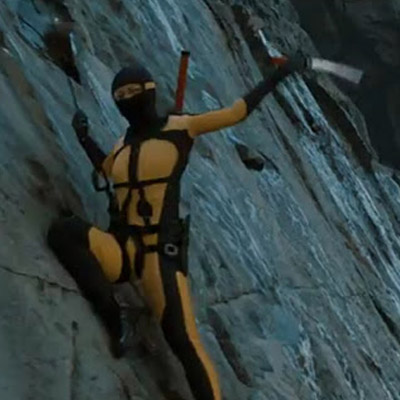 No good? At least she won’t get wet when she’s doing all that ninja stuff. OK here’s a better one where she’s dressed as a bee from G. I. Joe Retaliation.