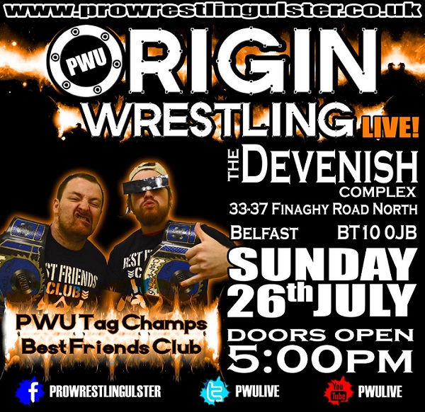 Also announced recently was a new monthly show at the Devenish Complex ‘ORIGIN WRESTLING’ I’m presuming this will be put on every 2 months in between supershows and the first show features the ‘Best Friends Club’ defending their Tag Team Titles. I think we should see some good wrestling at these shows, with an emphasis on more local talent and at a slightly cheaper price tag of £7.