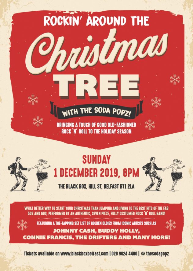 So what are you waiting for?! Join the sensational Soda Popz and rock around the Christmas tree for a nostalgic, fun tribute to that wonderful era. 50s attire encouraged!