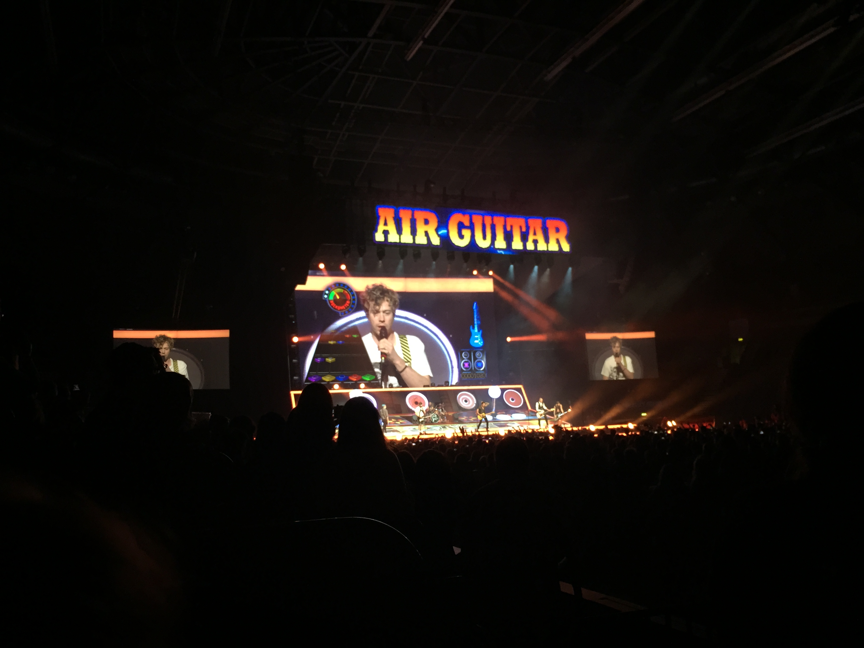 With this in mind, it’s clear to see that nostalgia is a definite theme running throughout the entire show – before the band even hit the stage, the crowd is warmed up with trailer upon trailer for old movies such as The Karate Kid, Weird Science, Back to the Future, Teen Wolf, and of course, Bill & Ted’s Excellent Adventure. As the lights go down, the neon lights go up and the stage is set to look like a massive arcade game. As our character’s are picked on-screen Harry, Dougie, Matt, James, Danny and Tom pop up onto the stage before launching into Air Guitar. Here the giant arcade machine is used to its full potential in a Guitar Hero style where it’s like the band are playing the computer game itself. This is definitely one of the best entrances, not to mention stage sets I’ve ever seen in the Odyssey Arena and the atmosphere was electric.