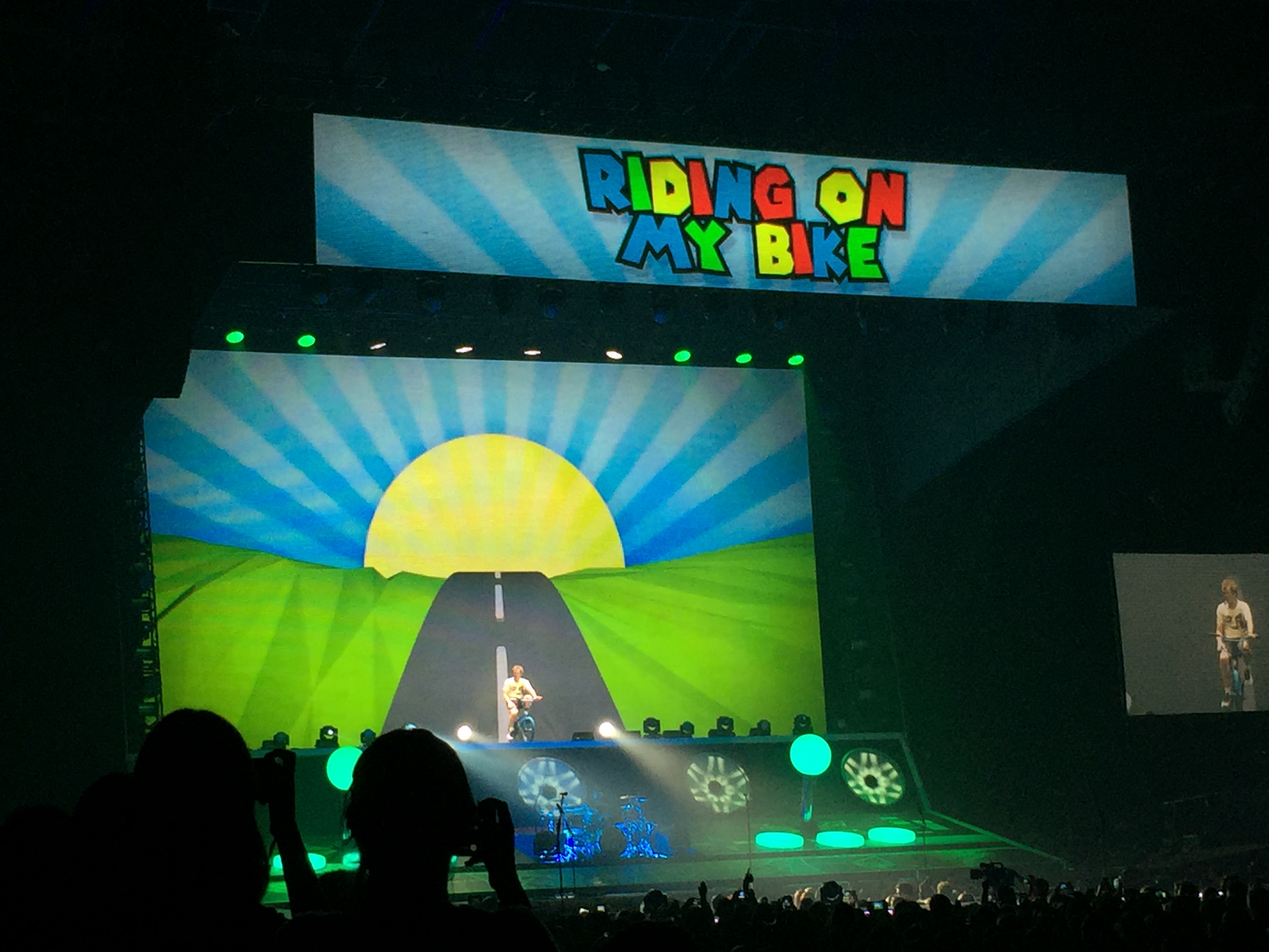 The use of the giant screen is fantastic and innovative throughout, with graphics and lyrics being displayed to help add to the performance, and even a break for the guys to play the largest game of Street Fighter I’ve ever seen. Surprisingly, my favourite track of the night was a new one; the chip tune-esque Riding On My Bike sees James cycling a stationary BMX while the screen scrolls by behind him, making it look like part of a computer game, he then breaks free and cycles his BMX around the stage, firing shirts into the crowd. If there’s one thing you can expect from a McBusted show it’s fun and lots of it, right from the outset there are jokes about ‘boobies’ and ‘front bottoms’, a kiss cam for It’s All About You, wedding dresses for Crashed The Wedding and just tons and tons of energy being expelled.