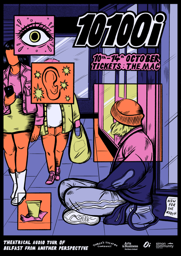 Three’s Theatre Company join with Outside In and The Simon Community to bring you 1010Oi – 2 stories, 2 journeys around the city, 2 chances to see Belfast from another perspective, see why things need to change.