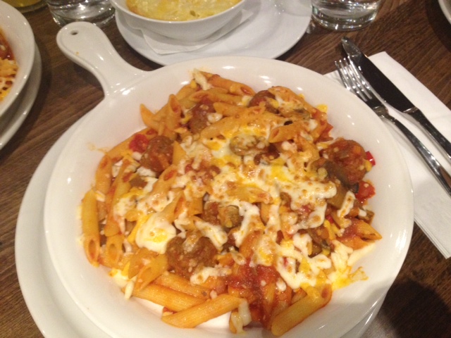 When La Tasca in Victoria Square closed last year it was met with great sadness at the Pastiebap Bunker. It was a favourite of ours for 5 years and we had many great dinners, meetings with old friends and family birthdays at it. But alas now it is gone and from the ashes rises a Pheonix in the form of Prezzo.You can book online (which is always nice) and so an e-mail and sms (do people still say sms?) message of confirmation later and we were on our way. As we entered the glass front doors the first thing I noticed about the décor is that it is certainly aesthetically pleasing. Tasteful but comfortable looking. Whites and dark woods complement each other nicely and make you feel at ease while you peruse the options on the menu, and what a lot of options there are on that menu. But I digress. As we entered we were greeted and swiftly shown to our table. A brilliant big round table that seated 8 well. I find round tables are the best for groups as you can see and talk to everyone; eating out is as much a social experience as it is a culinary one. They seemed to have a lot of round tables and as we walked through we noticed 2 couples with babies and children, so it’s certainly family friendly I have to comment on the staff who were nothing but wonderful throughout. They sorted out the heat (too high but soon sorted) checked back regularly and were witty and pleasant the whole night.
