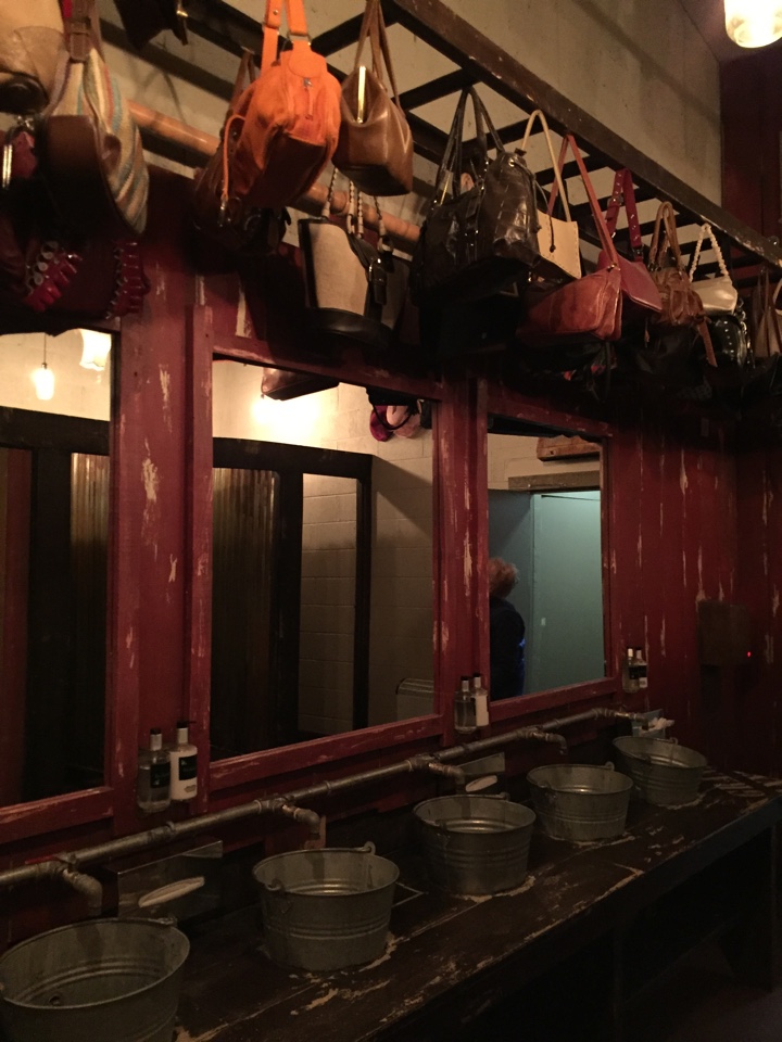 As if this all wasn’t enough, the true surprise is the toilets – corrugated iron separates the cubicles, the sinks are metal buckets plumbed into the walls and as you look up at the rows of handbags hanging from the ceiling, the real surprise hits you, there’s a full living room scene hanging above you.Now onto the important part, the food – they’ve just launched a new lunch menu, which we decided to give a go. There’s a good range of stuff on there from burgers and fries to ham hock sandwiches, and even a few sharing options such as ribs and wings which are great for a lighter lunch.