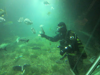 At 3.30pm we saw divers feeding the fish and they interacted with the children looking through the thick glass, waving, motioning and demonstrating how the fish and other sea creatures lived and fed. Then, we were just in time to catch another demonstration at one of the discovery pools. This was the most enjoyable aspect of the day, the demonstration was very informative and humorous and it’s always fun to be able to interact with the creatures first hand.