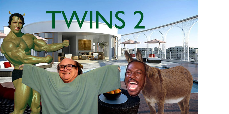 Firstly, did i just use the word deets? I appologise. Secondly, I love the idea of the three of them lunching together at Arnie’s house. DeVito spills red wine on his shirt and Arnie has his maid (not the one he knocked up, a different one) get him a clean one that’s 12 sizes too big. Eddie Murphy’s doing ‘Donkey’ impressions and trying to get Arnie to do a Scottish accent to be his live action ‘Shrek’. His Scottish accent is obviously terrible but once he has that green face paint on, you kind of buy into the whole scenario. They are all ‘laughing and laughing the whole meal through’. Oh to be a fly on the wall in that house. Why aren’t they making a live action Shrek instead of Twins 2?