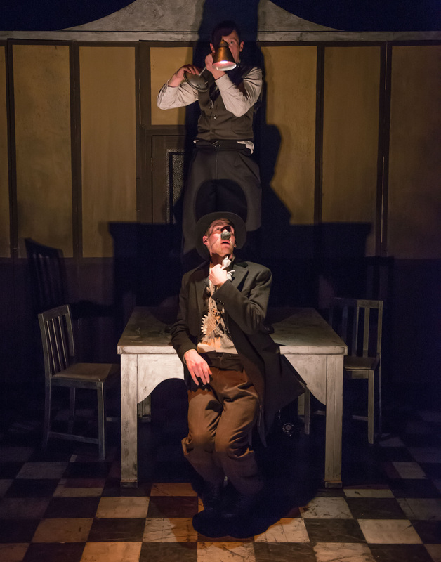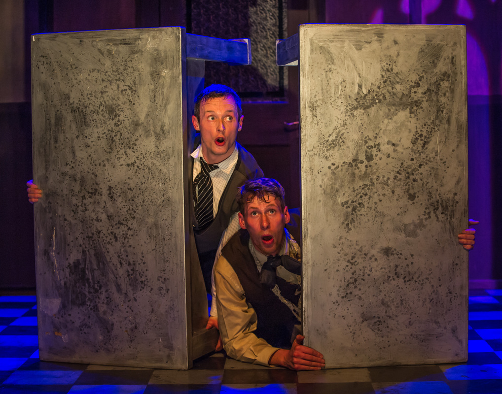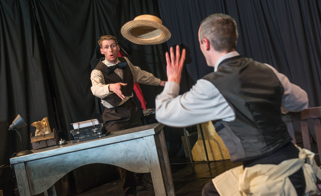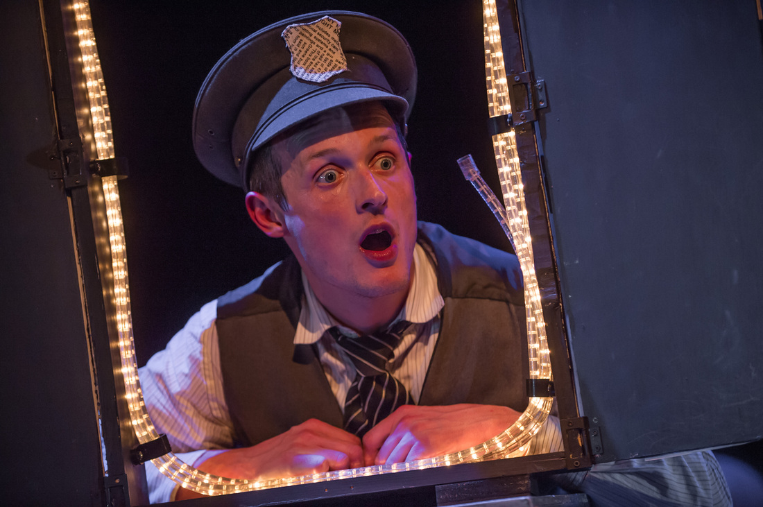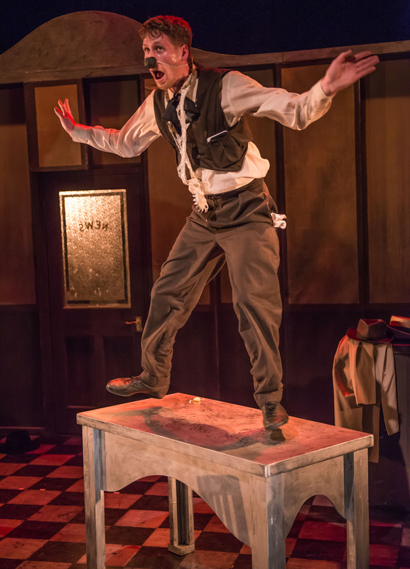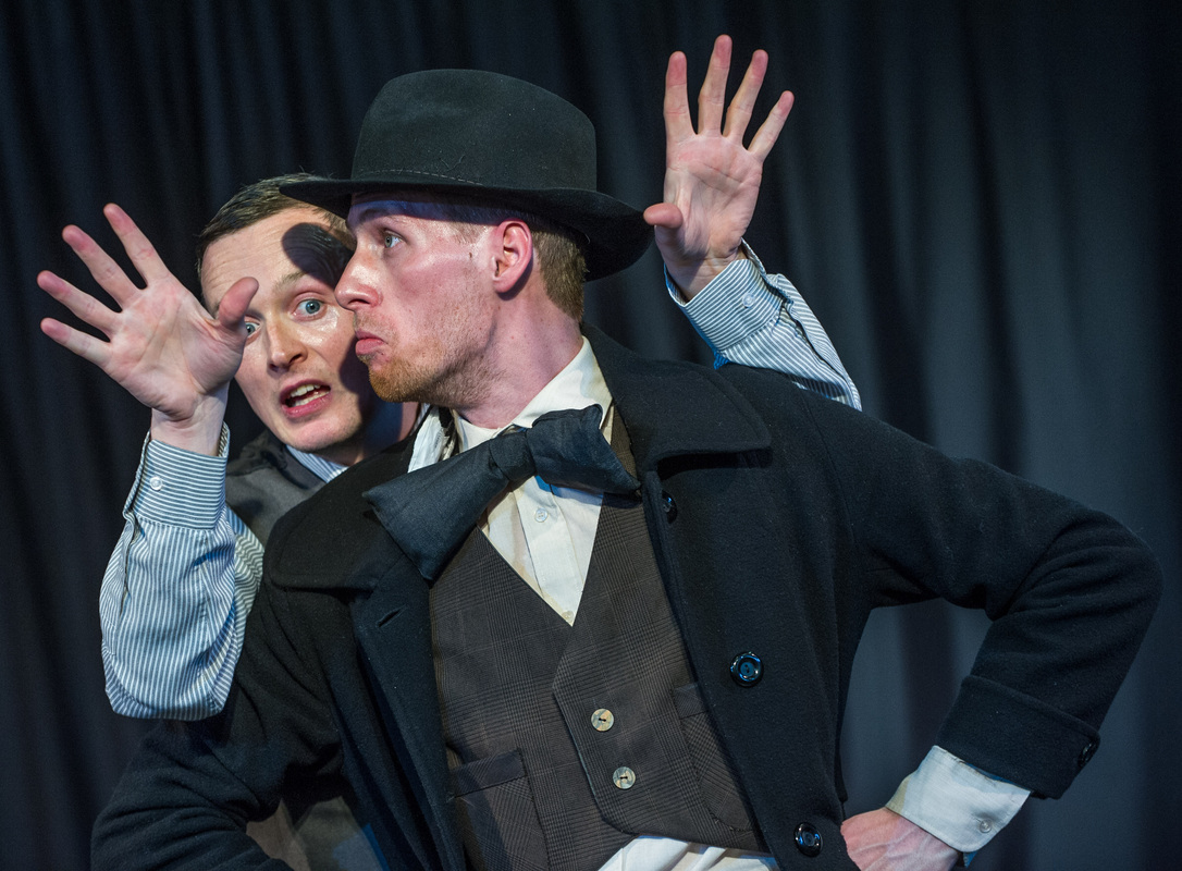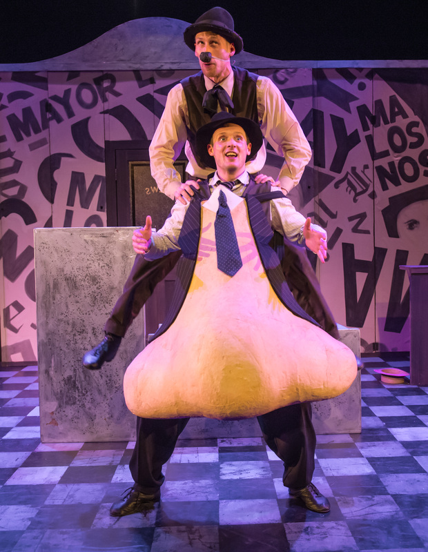 Basically it tells the story of Alexey Kovaliov (played by Mitchel Rose) the town Mayor, who wakes up one morning to find that his nose has gone missing off his face. What follows is 75 minutes of non-stop action, the two actors play a multitude of characters in a multitude of situations as Alexey tries to find and win back his beloved nose. The actors don’t stay still, they shift between characters seamlessly and they’re up on the tables, on chairs, under desks, it’s almost like watching them perform a dance -the choreography is so smooth and fluid that the whole performance from start to finish is a joy to watch.