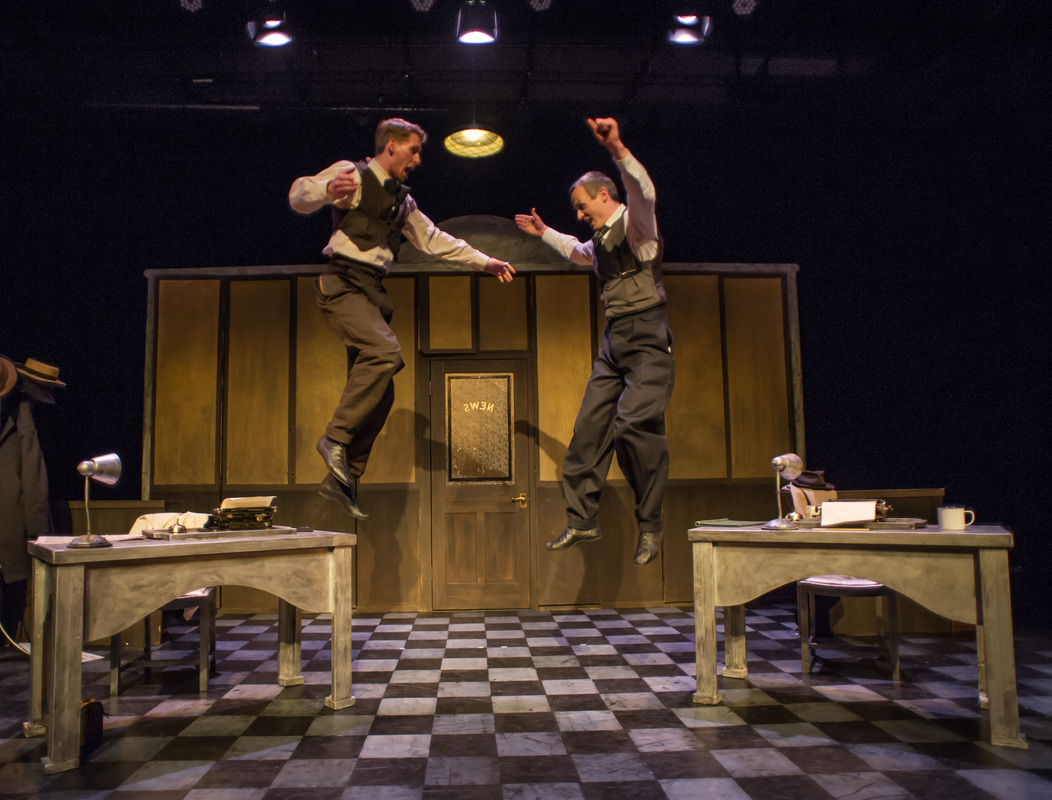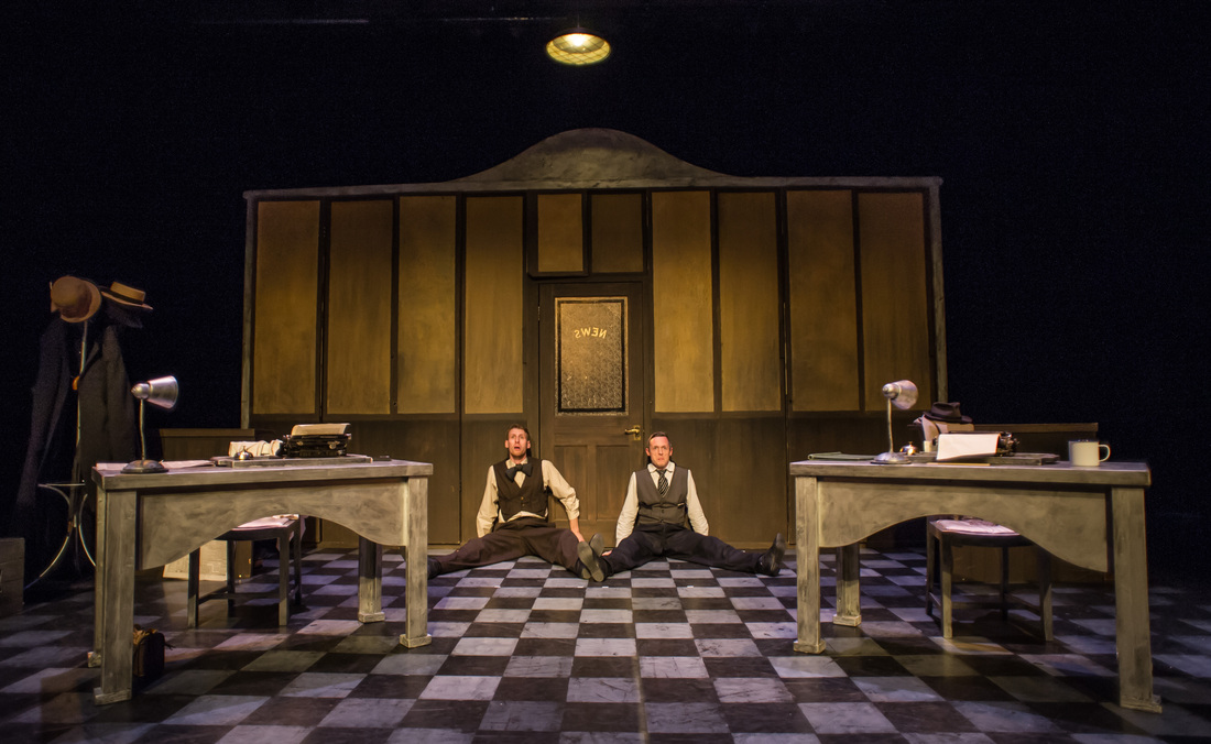 Everything is extremely well done – using just a filing cabinet and two desks, the scene is transformed before the audience’s eyes into a news office, an apartment, a Cathedral, a courthouse, a car chase and much more. We also see the sound effects being created by everything from the typing of a typewriter to the closing of a filing cabinet. It’s really interesting seeing the inner workings of a performance as a part of the actual performance itself.